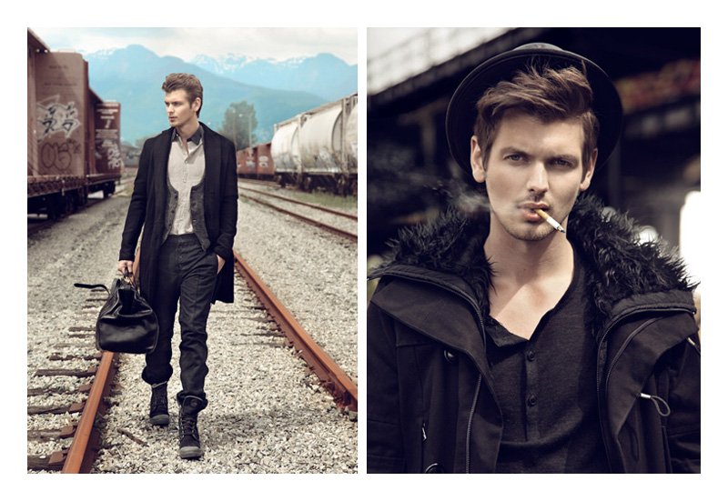 James Neate takes to the tracks for his recent fall story with Greg Swales. Photographed for Canadian magazine Dress to Kill, James is styled by Leila Bani for a look that blends both formal and informal aesthetics for an interesting yet grounded outing. Courtesy of – thefashionisto
