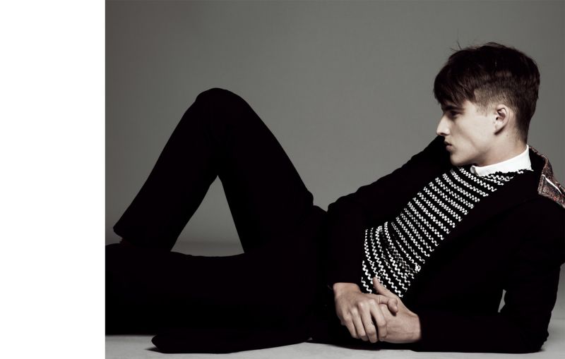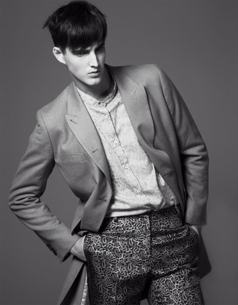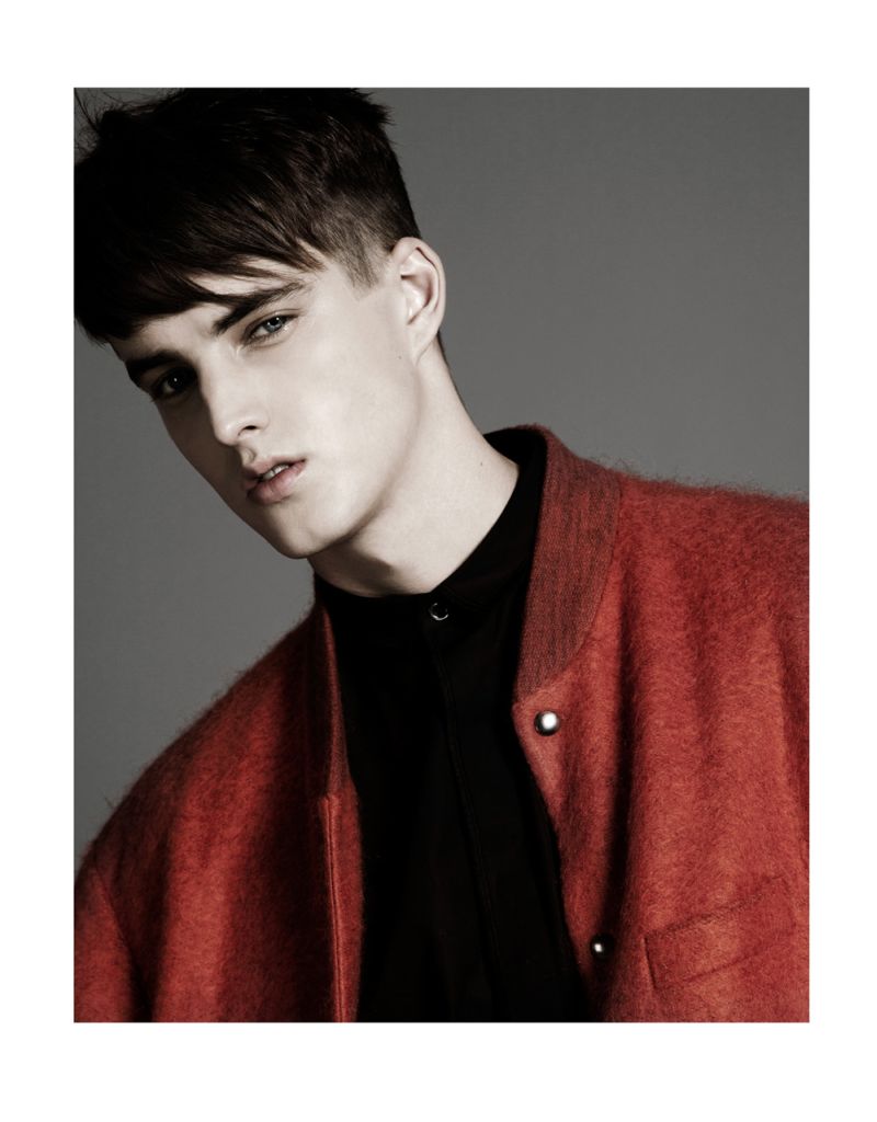 All about James–James Smith of Sight appears in the latest issue of Hysteria magazine having donned a wardrobe of printed neutrals. Shot by Liam Warwick, James wears one sole red bomber jacket. Courtesy of – thefashionisto.com
