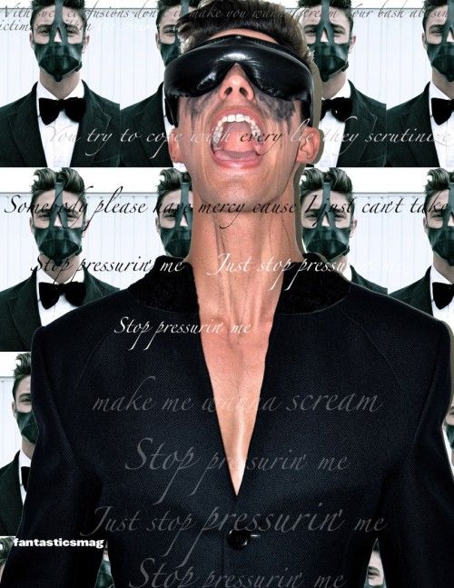 ‘Fantasticsmag shakes things up with their new editorial Scream by Alexander Beer. The intense London shoot features Boss models Jamie Hanson and Deano M. with styling & makeup by Ruth Frances.’- Homotography