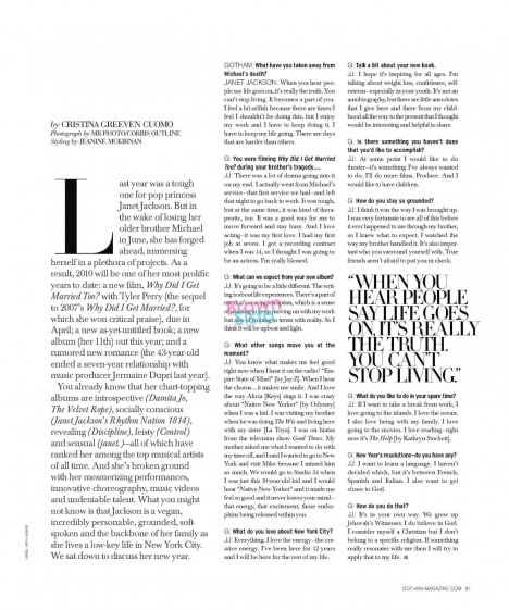 Miss Janet Jackson is looking quite divine on the cover of Gotham Magazine. She’s talking about her new music that will be produced by Darkchild. Is this the ‘comeback'(whatever that really means)Americans been waiting for?
