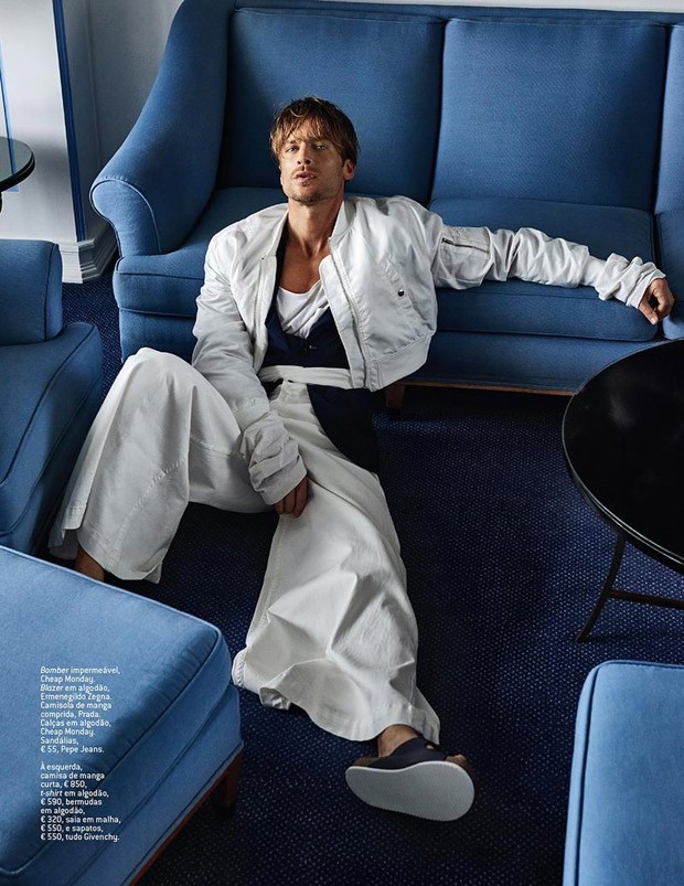 “Supermodel Jason Morgan takes the pages of GQ Portugal‘s February 2016 edition with Onda Azul story lensed by fashion photographer Branislav Simoncik. Styling is work of Jan Kralicek, with hair and makeup by beauty artist Elodie Fiuza.” – Malemodelscene.net