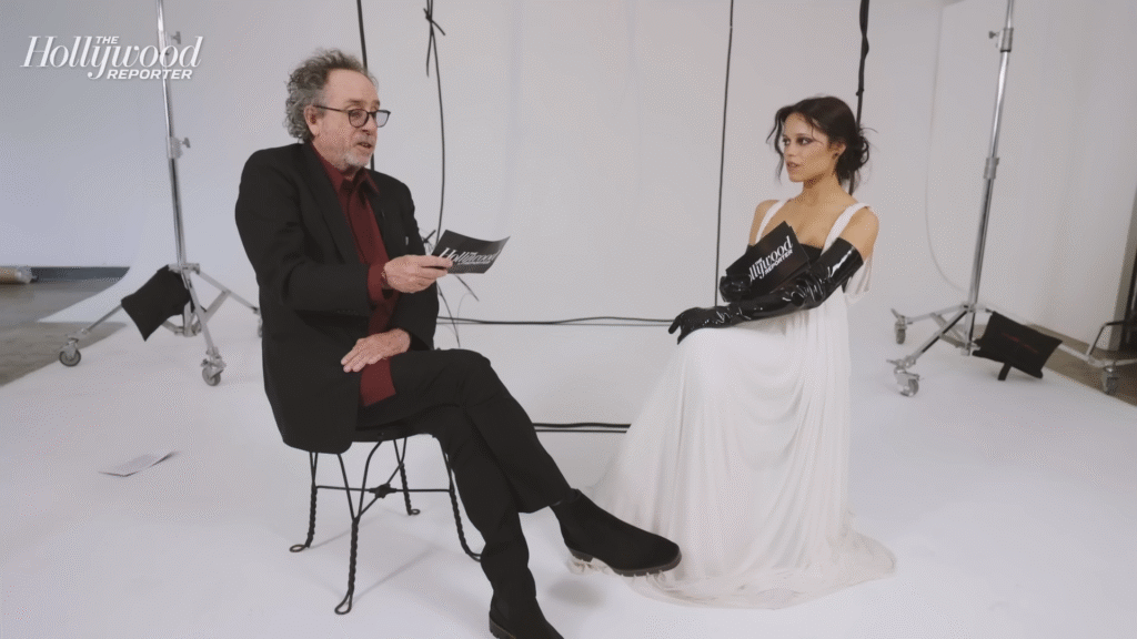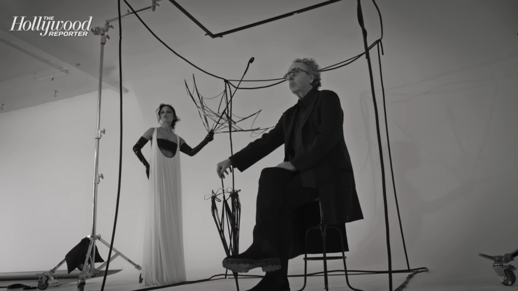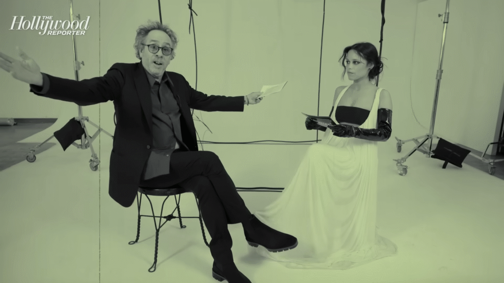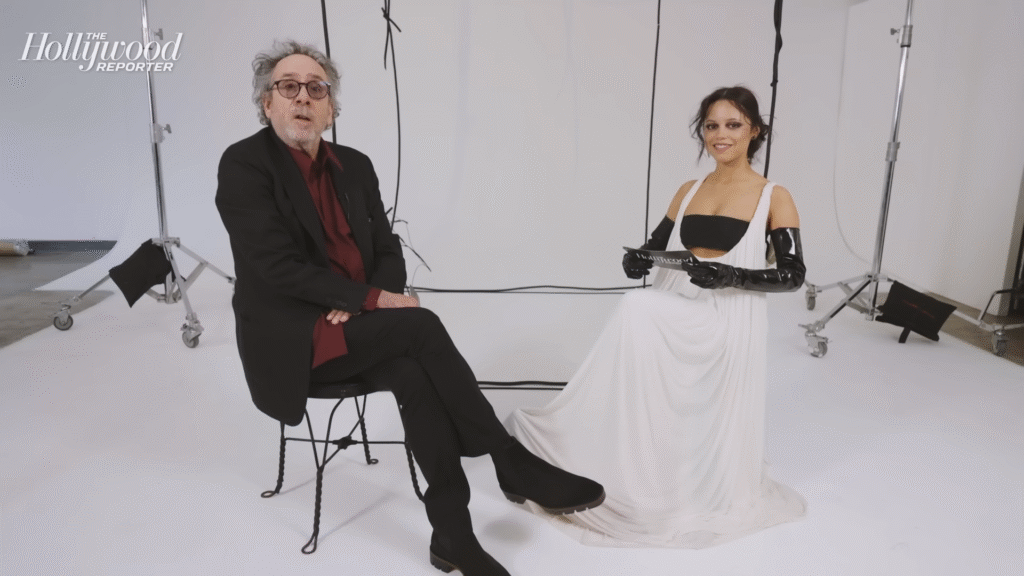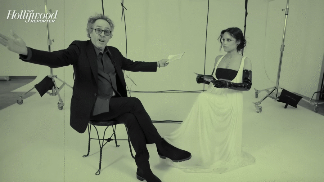 Tim Burton took over the themed story at The Hollywood Reporter in a special interview entitled “The Tim Burton Nightmare Show.” He brought along guest Jenna Ortega, star of Burton’s wildly popular Wednesday series.