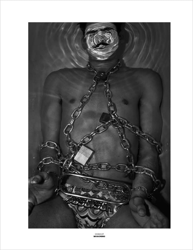 For the session Jhonattan (AMCK Models) is wearing selected looks from the likes of Mai Gi Dah, Chuck Hoberman, Cosprop, Dior Homme, Moschino, Tie Rack, Issey Miyake Men, Thom Browne, Helen Anthony, Acne Studios, Versace, and Thomas Pink. Styling assistance by Salina Hayashi, with retouching from Mario Ernun.” –
