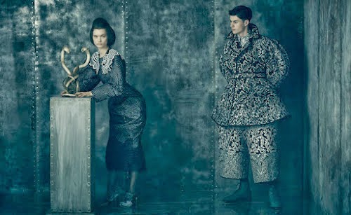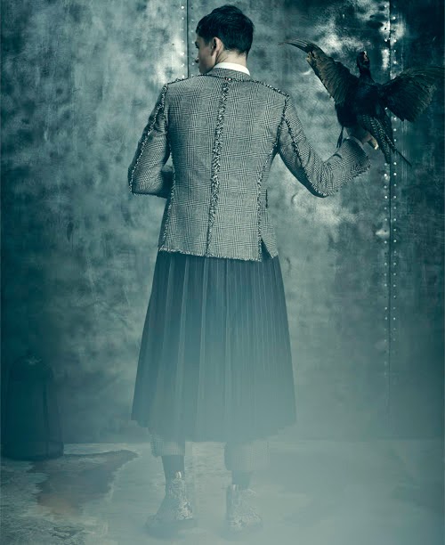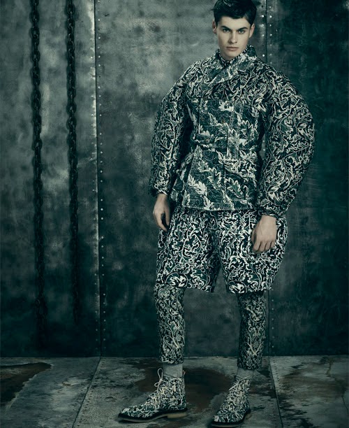 The new sixth issue of ODDA magazine features British model Joe Collier in ‘The Sublime Overstatement’, a Thom Browne Fall/Winter 2014/15 story photographed by Arnaldo Anaya-Lucca and styled by Julie Ragolia. Joe is joined by model Lyoka Tyagnereva. Courtesy of – Homotography