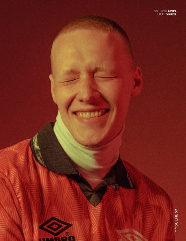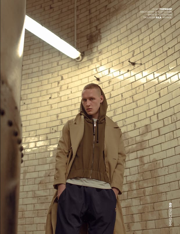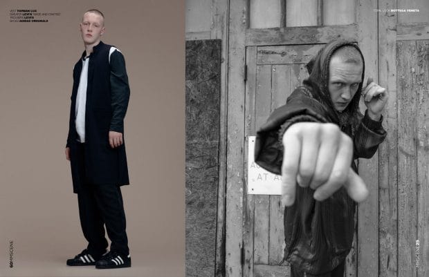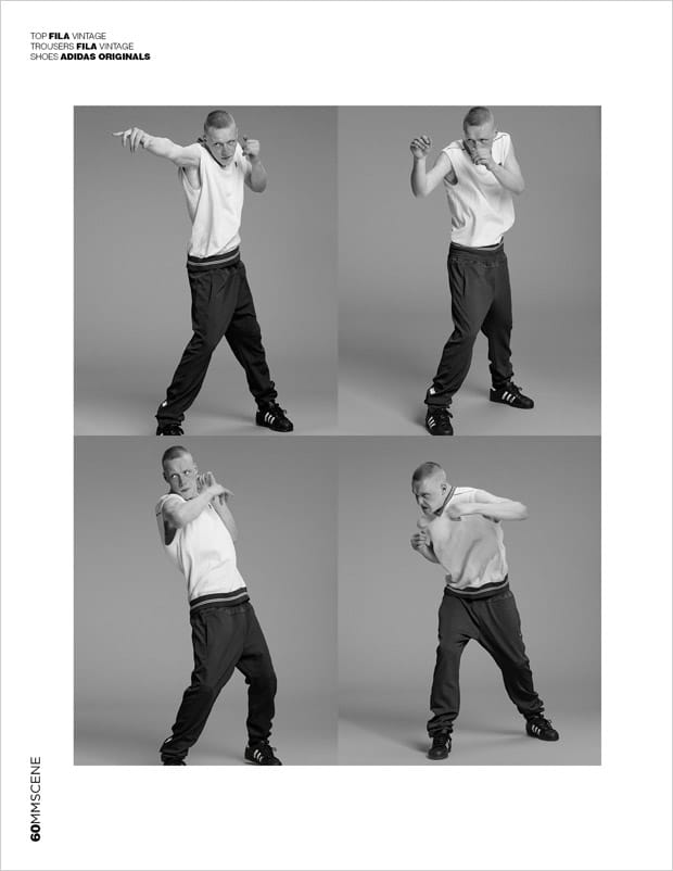 “For the session Joe is wearing selected looks from Levi’s, Umbro, Alexander McQueen, Nike, Alpha Industries, Fred Perry, Adidas Originals, Bottega Veneta, Topman LUX, Christopher Kane, Topshop, and Fila Vintage.” – Malemodelscene.net