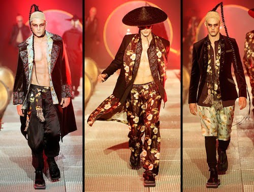 ‘John Galliano is well known for his eccentric designs, but the Fall/Winter 2010/2011 he presented in Paris is particularly hard to pin up. From male corsets and Sherlock Holmes style to Asian influences, let the images do the explaining.’ Homotography