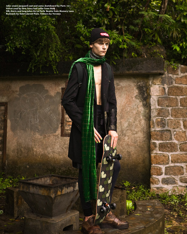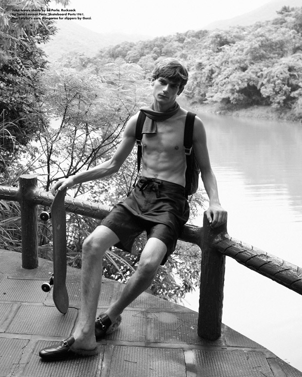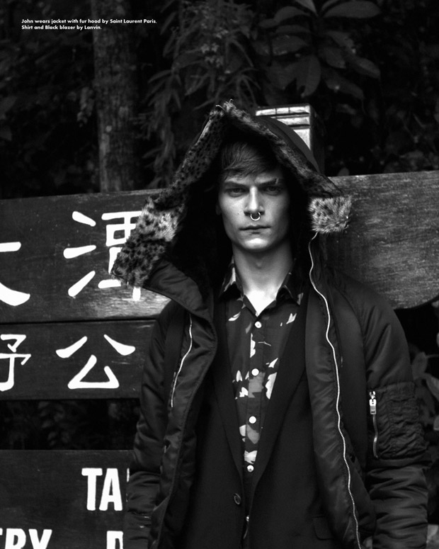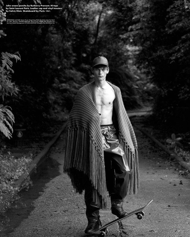 “Fashion photographer Baldovino Barani captures Chav Edit for SCMP Post Magazine‘s latest edition featuring John Meadows with Sun Esee Model Management styled by Cheryl Leung. Grooming is work of Karen Yiu using Tom Ford For Men Skincare. For the session John is wearing looks from Alexander McQueen, Lanvin, Burberry, Saint Laurent, Etro, Calvin Klein and La Perla.” – Malemodelscene.net