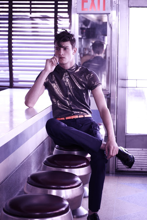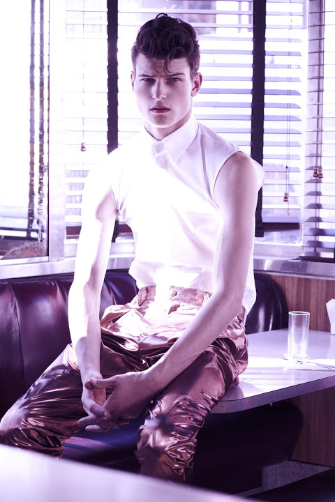 British model John Todd at Next Model Management is photographed by Bruno Staub and styled by Brent Austin Coover in the story ‘The Future Perfect’ for OUT magazine. Courtesy of http://homotography.blogspot.com