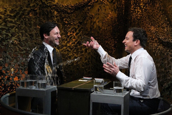 In case you kiddas missed it, Jon Hamm swung by ‘Late Night With Jimmy Fallon’ to promote Mad Men. Watch as Fallon and Jon Hamm toss water at each other for the sake of the game, the game of war that is.