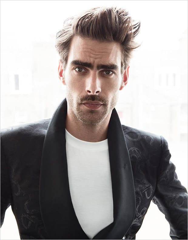 For the cover story Jon is wearing selected pieces from top brands such as Dior Homme, Givenchy, Dolce & Gabbana, Bottega Veneta, Theory, Zegna, Balmain, and Versace among other. ” – Malemodelscene.net