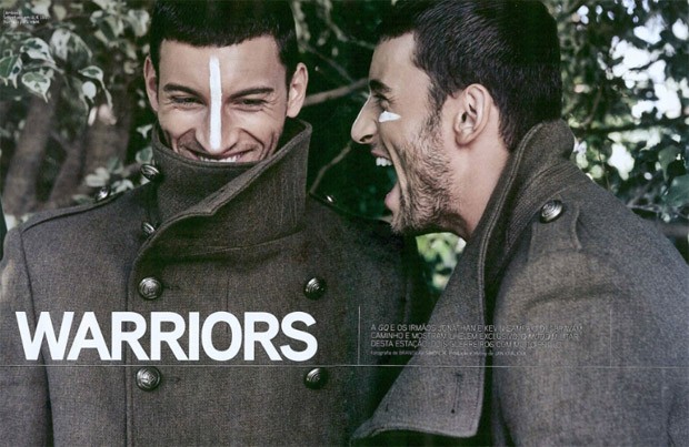 “Models Jonathan and Kevin Ferreira de Sampaio star in Warriors story captured for GQ Portugal‘s October 2015 issue by fashion photographer Branislav Simoncik. In charge of styling was Jan Kralicek.” – Malemodelscene.net