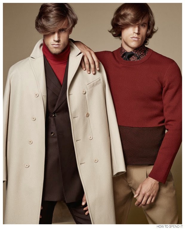 Luxe Attraction-Australian brothers Jordan and Zac Stenmark are at their ultimate best as they grace the pages of How to Spend It magazine with a new fashion editorial lensed by photographer David Roemer. With hair swept back in a retro-inspired style, the twin brothers are outfitted by stylist Mitchell Belk as they pose for a mix of studio and location shots. Wearing rich bordeaux hues for fall, Jordan and Zac models exquisite looks from the likes of Gucci. Courtesy of – thefashionisto.com
