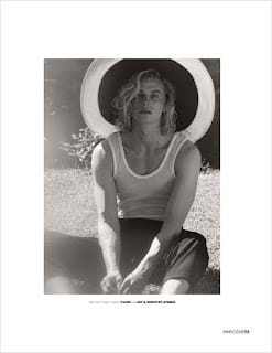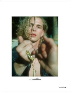 For the session Jorn is wearing selected pieces from Burberry, H&M, Converse, Andbeyond Studios Amsterdam, Artwear Dimitriadis, Eleftheriou, He-M-N-Oid, Levis, Art & Industry Athens, Studio Materiality, Kiloshop Athens, Clon8, Dior Homme, and Concept Store Athens.” – Malemodelscene.net