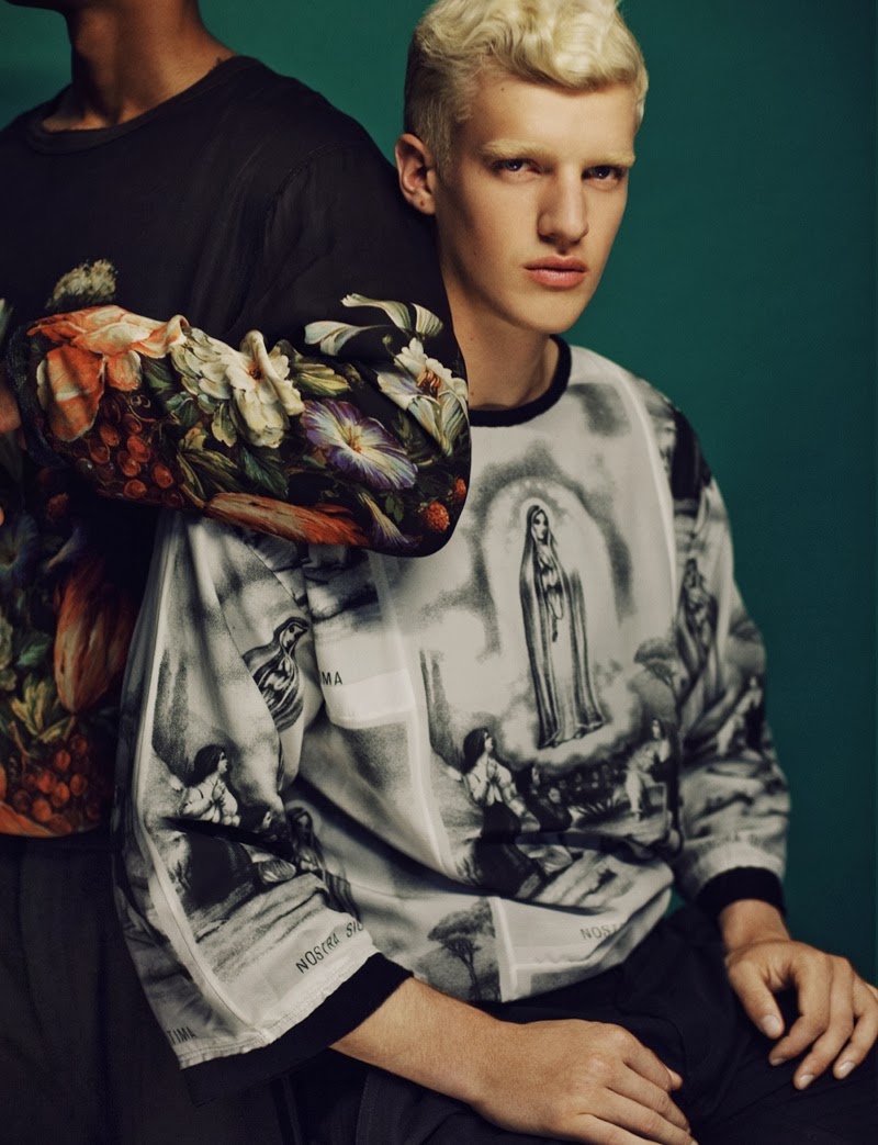 Dressed to Impress–Stylist Matthew Josephs and photographer Jeff Hahn join creative forces for this month’s edition of British magazine Wonderland. Honing in on fall prints and decadent fits, the pair shoots models Josh Bartley, Daniel Roberts and Marti Medina, capturing a mix of Alexander McQueen, Dolce & Gabbana and other labels. / Hair by Roxane Attard. Makeup by Thom Walker. Casting by Eddy Martin. Courtesy of – thefashionisto.com