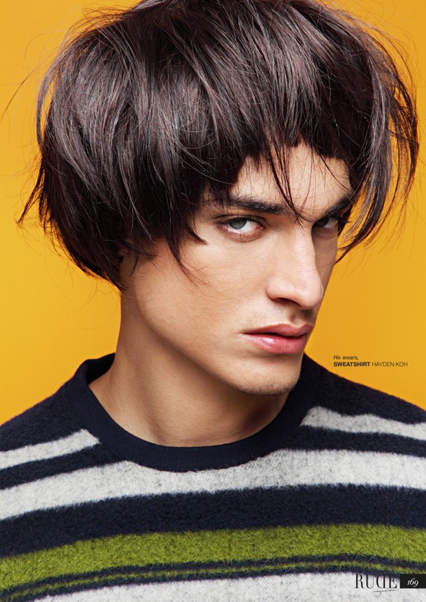 “Up and comer Jou Bellini teams up with fashion photographer Carlos Khu for Ness story coming from the pages of RUDE Magazine‘s latest edition. In charge of styling was Voon Wei, with makeup by Alvin Loh and hair styling by Ckay Liow. Fashion editor Jesus Rios. Jou is represented by WAY Model Management.” – Malemodelscene.net