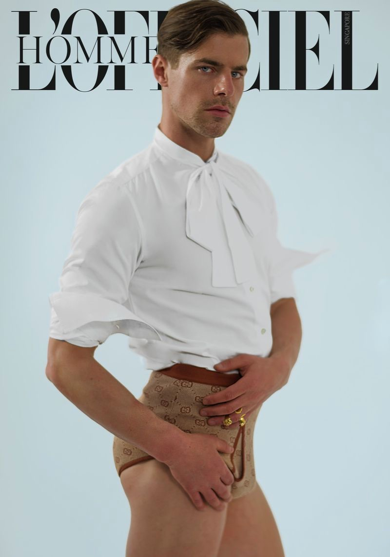 “Jules Horn is Le Petit Prince for L’Officiel Hommes Singapore. Taking to the studio, Jules appears before the lens of photographer Jacques Burga. Embracing eccentric looks, Jules is styled by Henry de Castillon. A fashion peacock for the day, Jules wears a variety of outfits. He stands out in fashions from brands, which range from Gucci to Charvet Paris.” – TheFashonisto.com