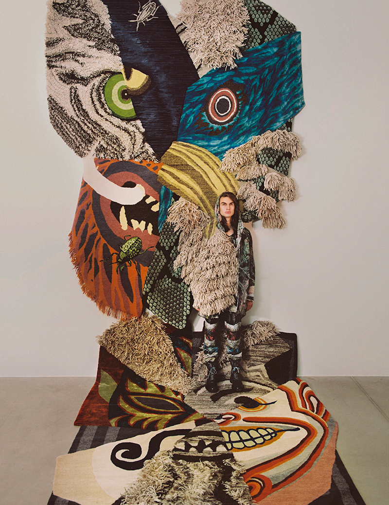 “The collection is inspired by Switzerland’s rural customs, fairytales and the characteristic noises of cow-bells. Psychedelic voodoo-forest-ghosts dancing around Rumpelstiltskin’s fireplace. Traditions and spirits flipped into the modern world.”” – FY Magazine.es
