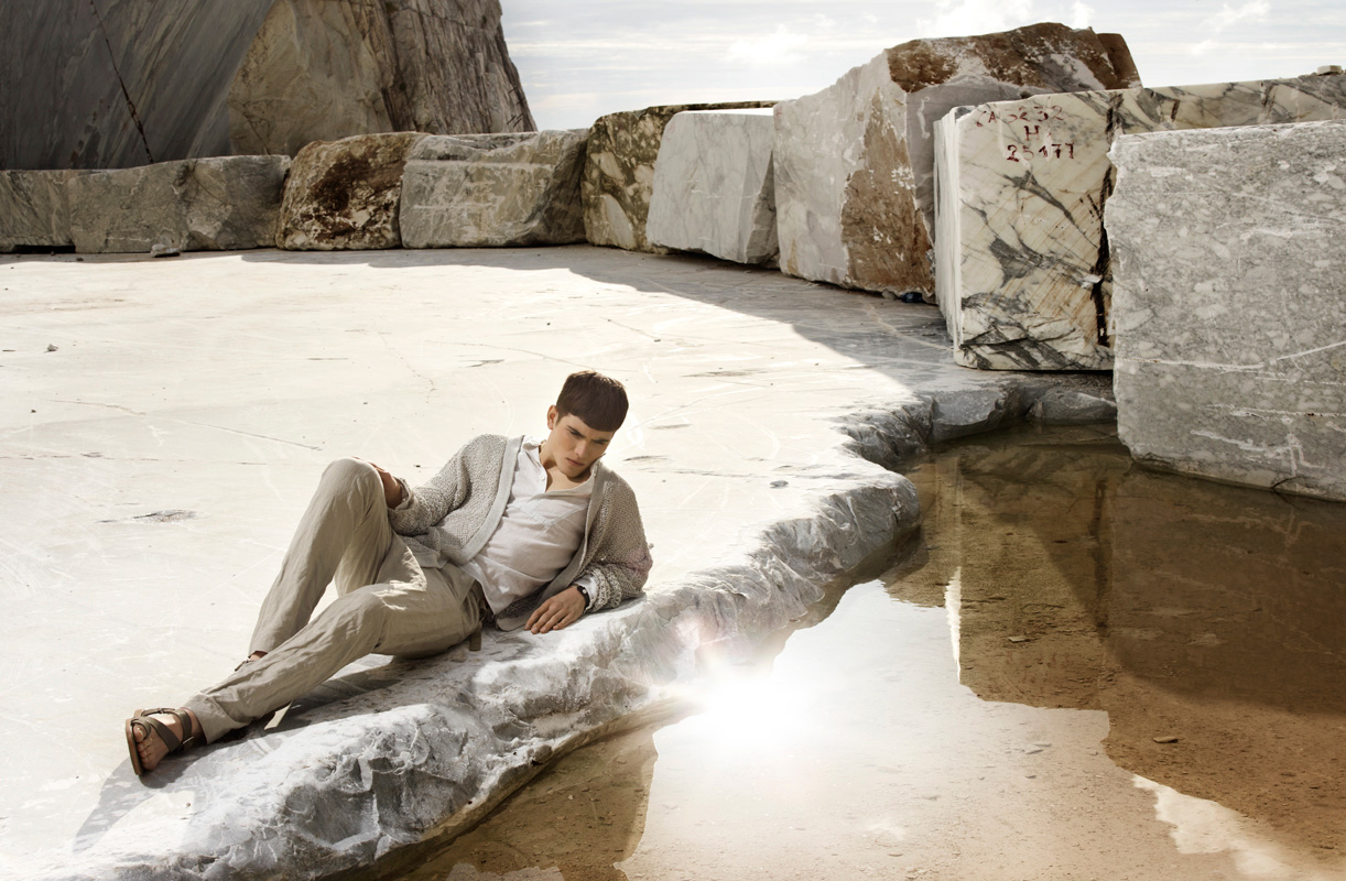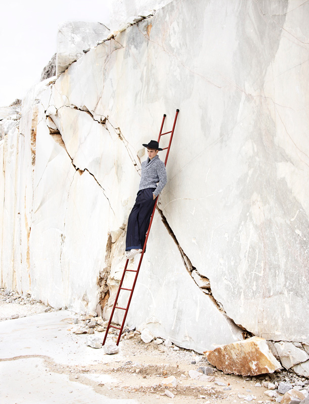 When it comes to art, not many mediums are as difficult to work with than marble but the results are often striking. It’s fitting the Julius Pfister appears in this striking shoot from Magda Wunsche & Samsel, with styling provided by Corinna Brix, set amongst a marble quarry, all whilst donning dramatic looks with high collars and interesting drapes. Courtesy of – hommemodel.blogspot.com