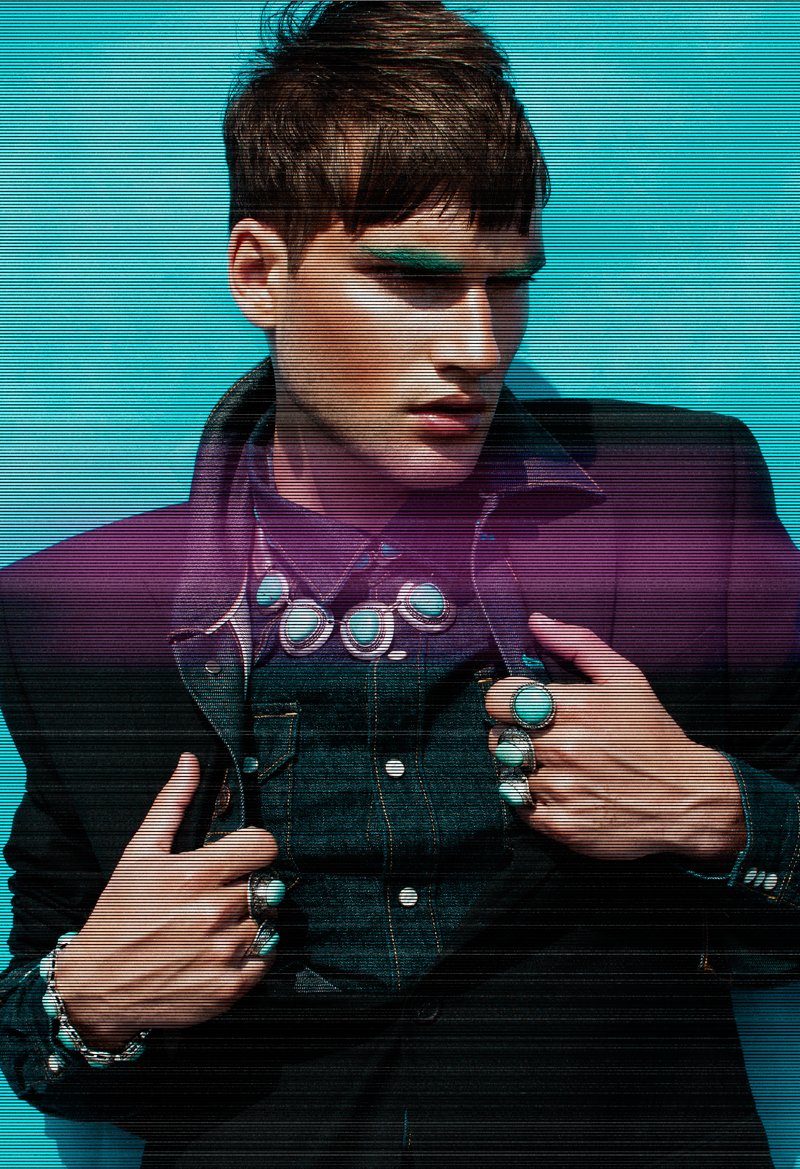“Appearing in Blend’s most recent issue, Red models Jullien Herrera, Chris Swoszowski and Vali Cosa go digital for a story photographed by Jason Kim with styling by Sonny Groo. Walking the walk and talking the talk, the trio don an array of denim and suits accessorized with turquoise.” -Fashionisto