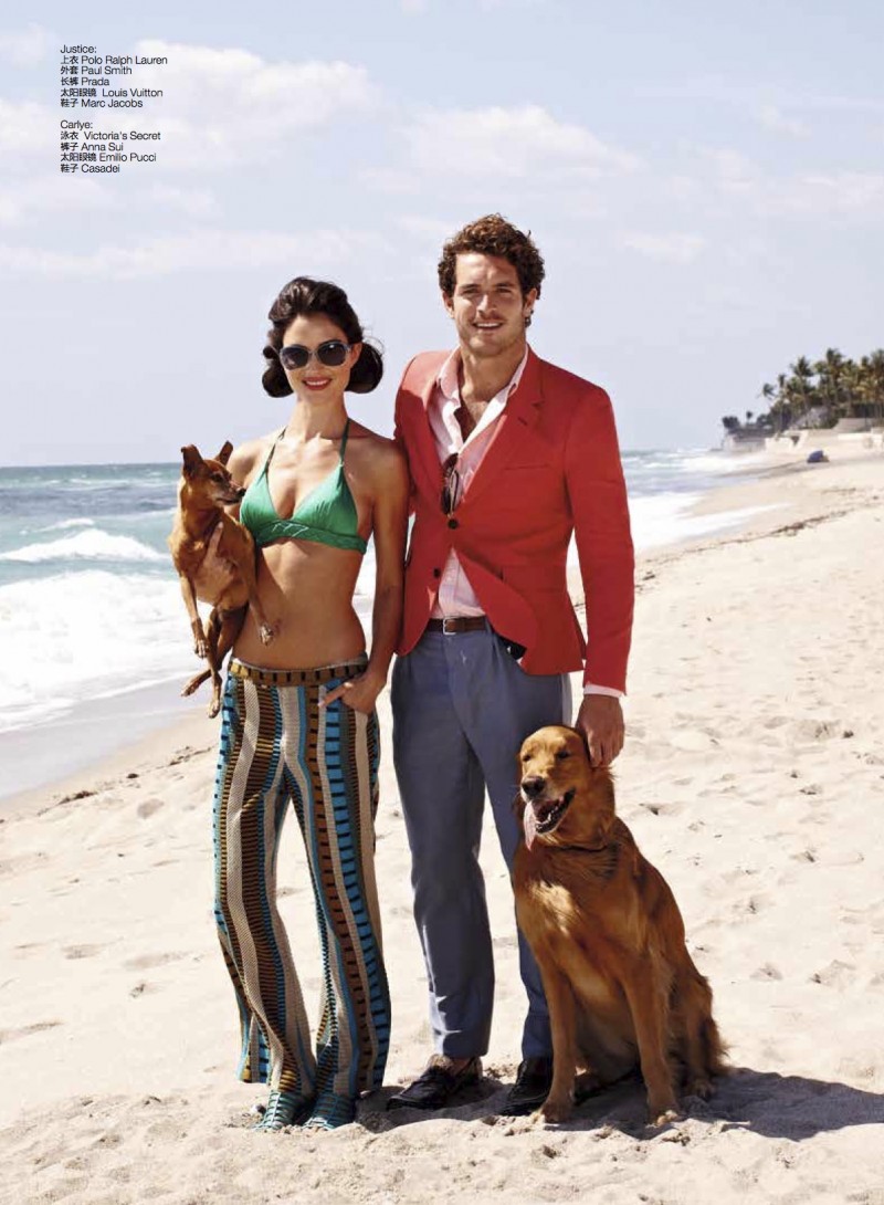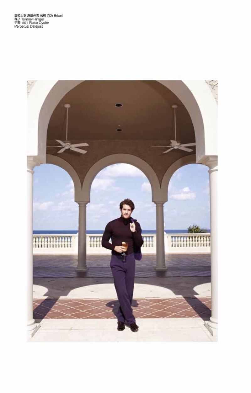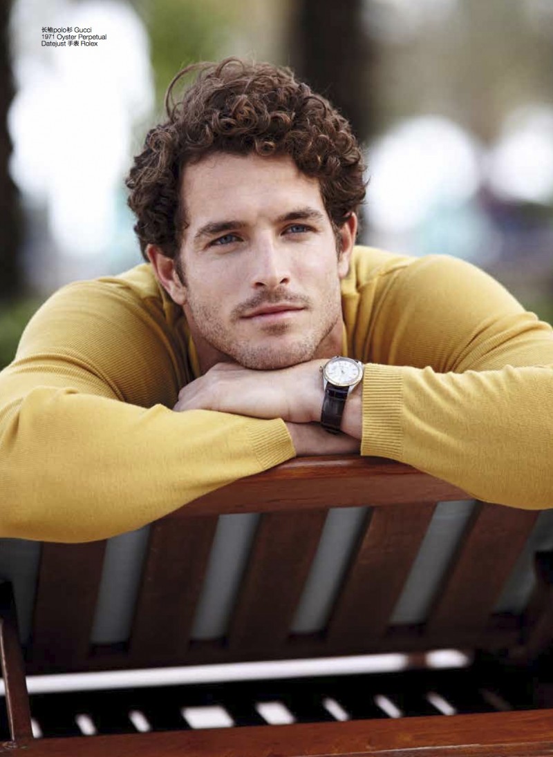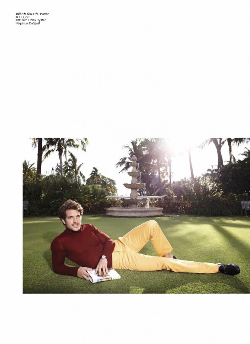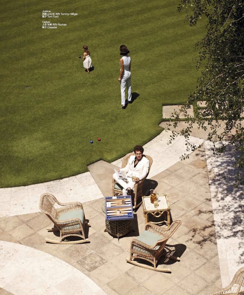 “The Good Life–Photographed by Blair Getz Mezibov for the August issue of Chinese GQ, model Justice Joslin lives life to the fullest. With a wardrobe that includes chic pieces from labels such as Gucci, Louis Vuitton, Prada and many more, assembled by stylist Grant Woolhead, Justice perfectly embodies the concept of modern luxury. Wearing the timeless black tuxedo, or lounging on the grass in casual designs, Justice gets ready to spend a season in glamorous style.” –