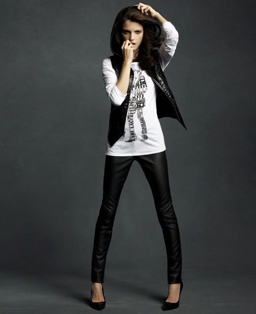 “Finally, a look at Karl Lagerfeld‘s much-hyped capsule collection for Macy’s ‘Impulse’ department. Macy’s offered up a preview of the full line last night at a gallery space in SoHo wallpapered with black and white photos of the Kaiser looking awfully serious (as he usually does) and campaign images featuring the always-stunning Coco Rocha photographed by Lagerfeld in his library in Paris.