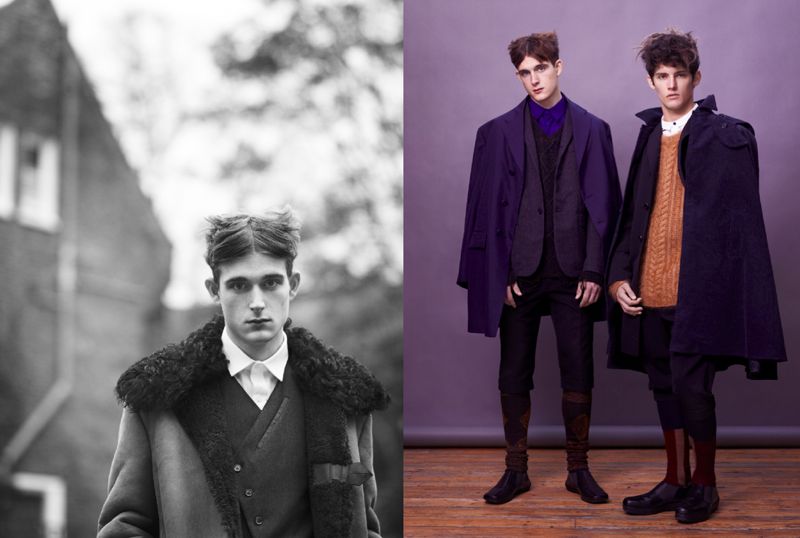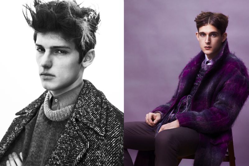 “Splitting Hairs–With a feature loosely influenced by early twentieth century Ukrainian mental patients, models Karl Morall (Premier) and Sam Bennett (Storm) certainly aren’t sparing the camera from their sullen pouts and outré wardrobe in a feature for Metal magazine. Photographed by Paolo Zerbini and styled by Santi Rodriguez, the boys don layer upon layer of knitwear, wools and tweed for an outlandish photo shoot. / Hair by Tomihiro Kono.” – Thefashionisto.com