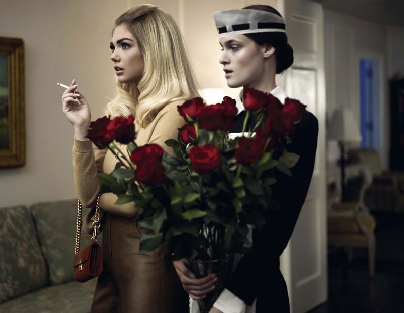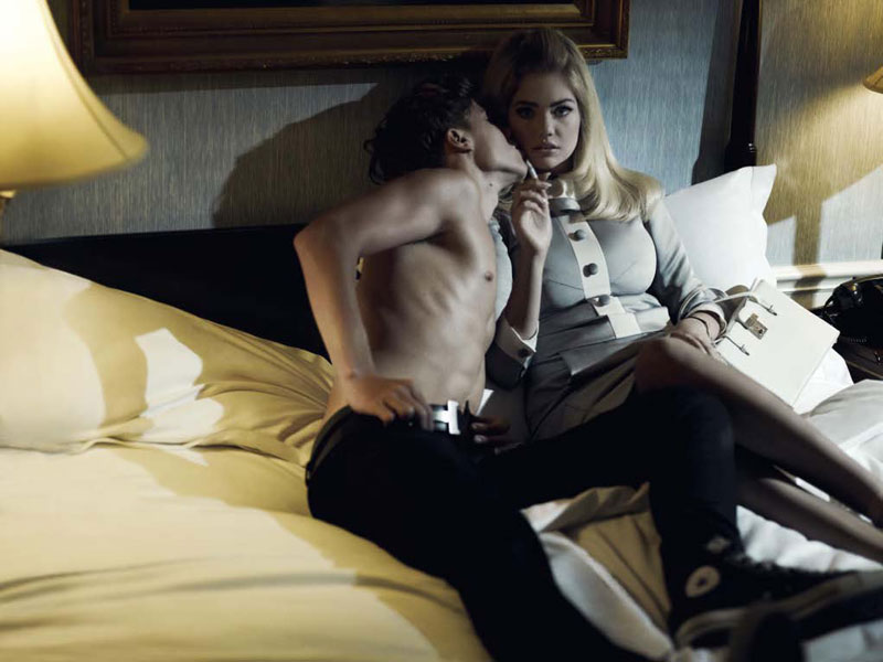 © by V / Photography Sebastian Faena / Styling Julia von Boehm / Make-Up Jeanine Lobell at Tim Howard Mgmt / Hair Didier Malige at Art Partner / Models Kate Upton at IMG, Liam Dean at Red NY, Kremi Otashliyska at Ford NY / Manicure Honey at Exposure NY / Light Design Chris Bisagni / Prop Styling Anthony Bornstein, Clare Joan Byrne, Michael Gleeson / Make-Up Assistance Chisa / Hair Assistance Takashi Yusa / Production Helena Martel / Production Assistance Alberto M. Colombo / Prop Styling Assistance Sam White / Light Design Assistance Carlos Ruiz / Location The Waldorf Astoria, New York / Location Equipment Root / Retouching Smooch NYC / Special Thanks Martin Andersen. Courtesy of – coutequecoute.blogspot.com