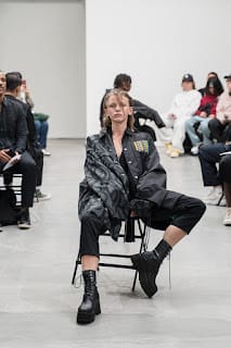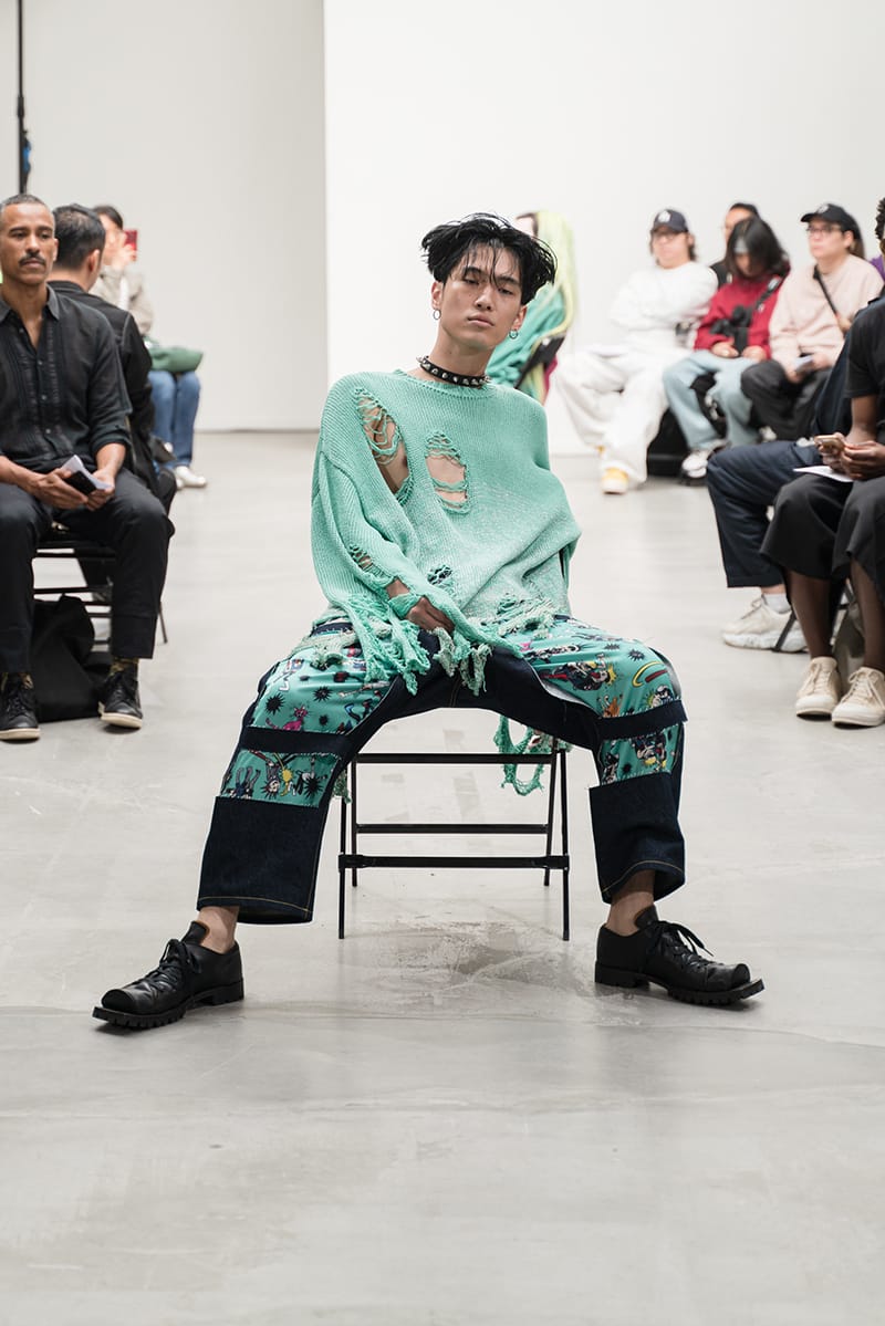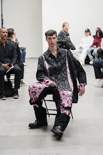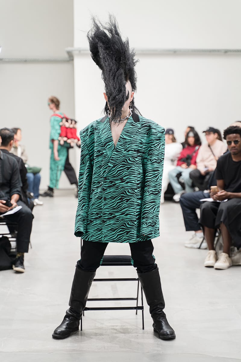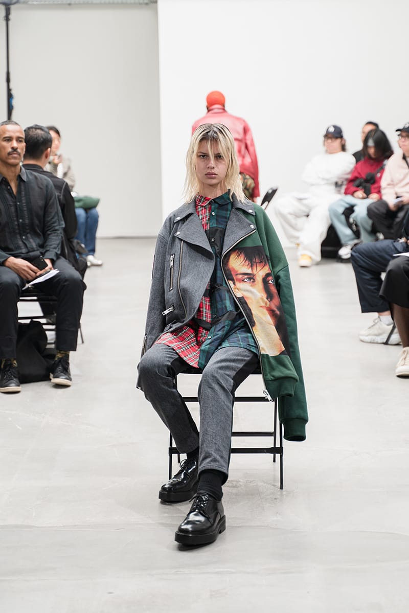 “The “DOUBLE DARE” collection of KIDILL is an homage to the vocalist Peter Murphy of legendary British gothic band BAUHAUS. Rare photos Peter Murphy, taken by iconic photographer Sheila Rock during 1978-83, are used throughout the collection. Rock is renowned for her photography documenting punk rock history shooting cult British bands like The Sex Pistols and The Clash. These iconic images are linked with the vivid memories of British youth culture, the Punk Rock movement. Punk Rock culture is the most important concept for the designer” – FY Magazine.es