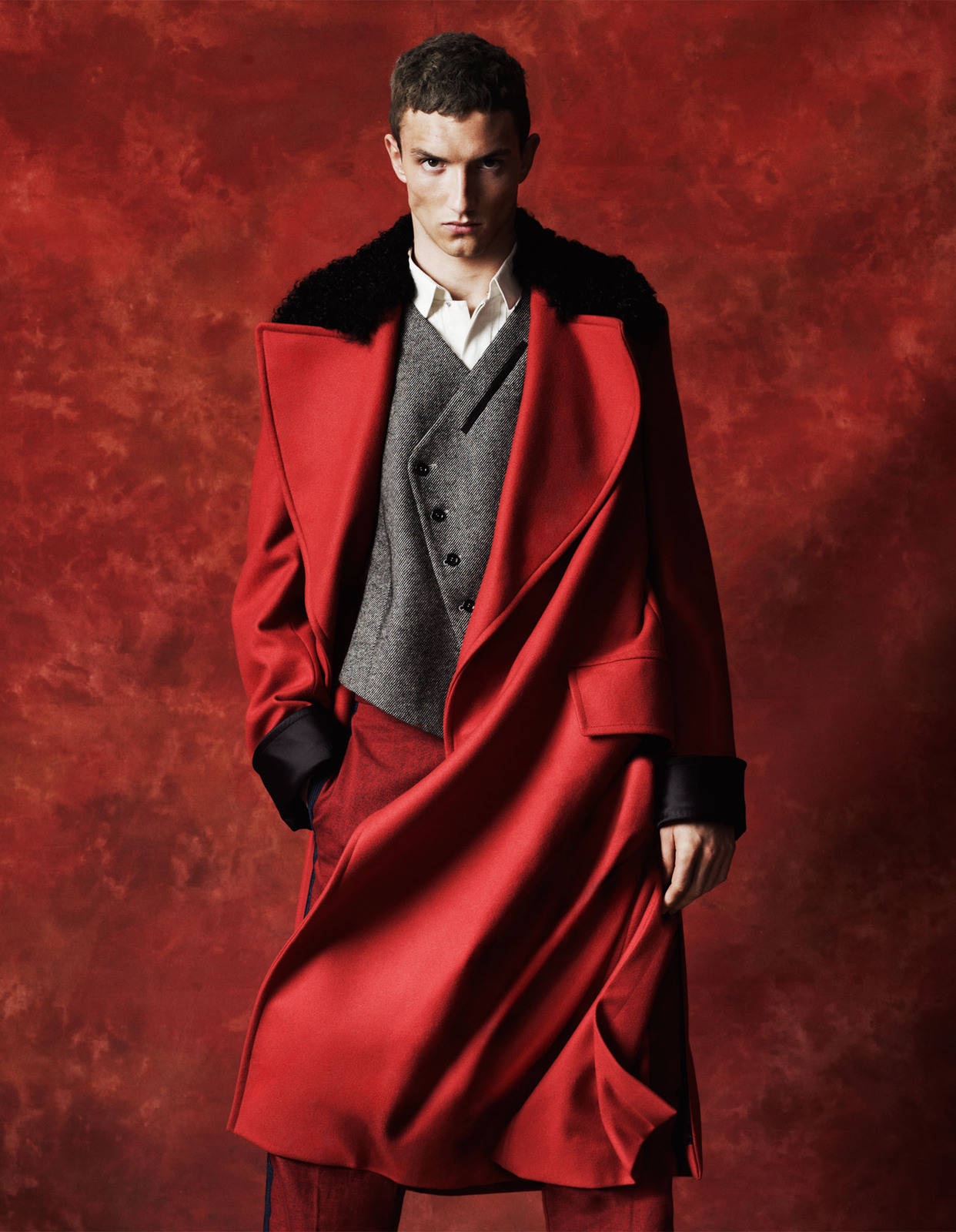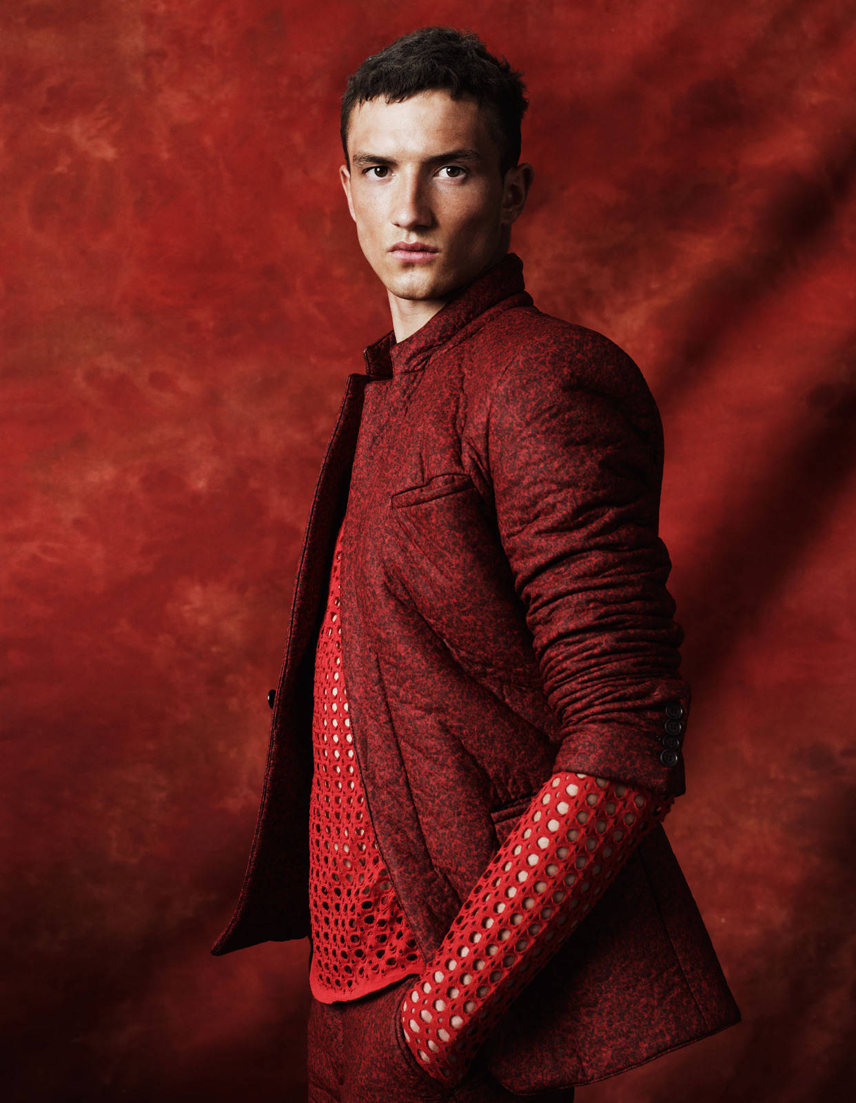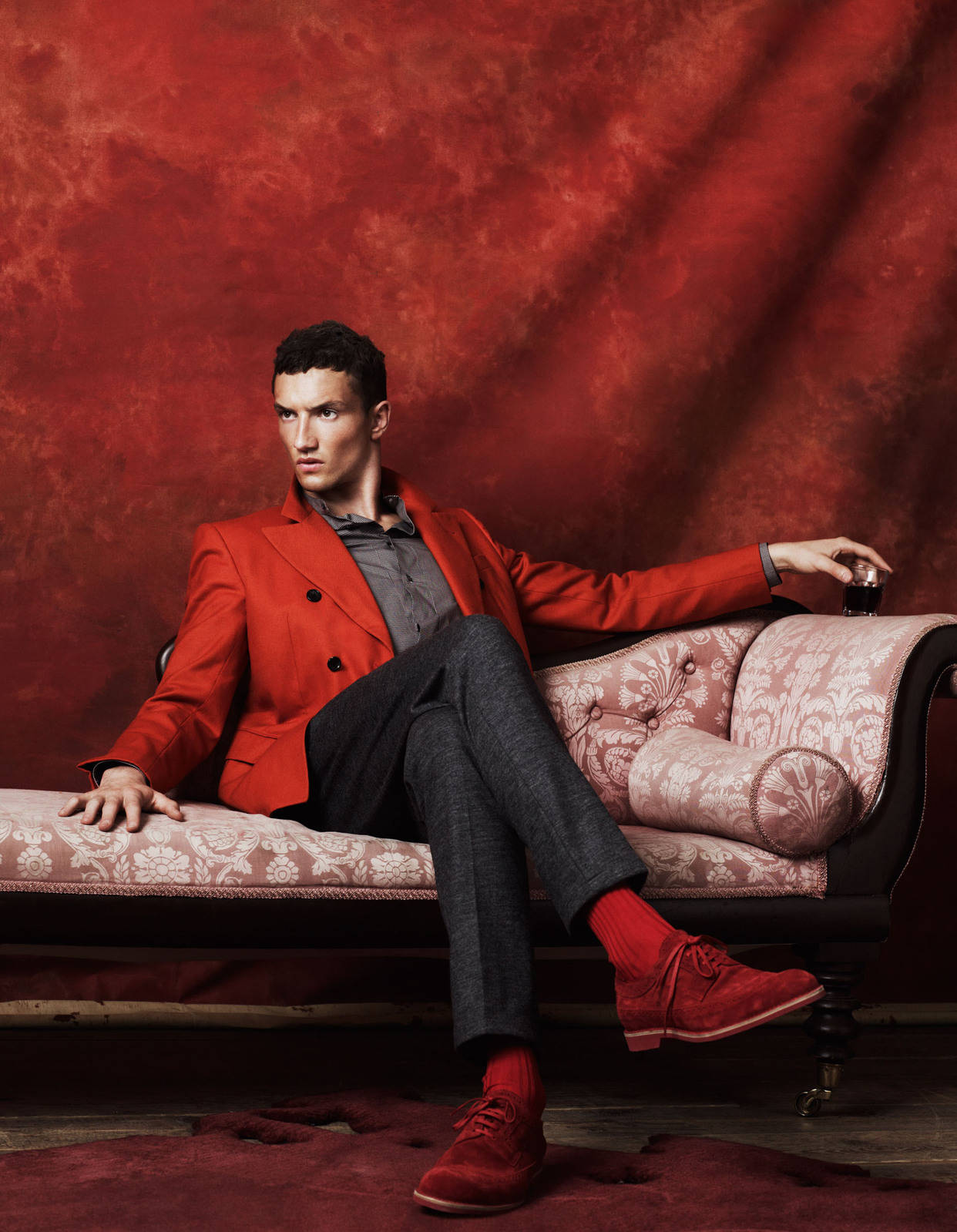 Jacob Coupe is captured and styled by Damien Foxe for “How To Spend It”, a feature from the premier source for finance-related news, The Financial Times. With the gains the stock market has made since the worldwide recession started in 2008, financiers and stockholders have a little extra to spend this holiday season and for this feature, The Financial Times suggested you dress festively in these luxurious designs, all in a bright red shade. Courtesy of – hommemodel.blogspot.com