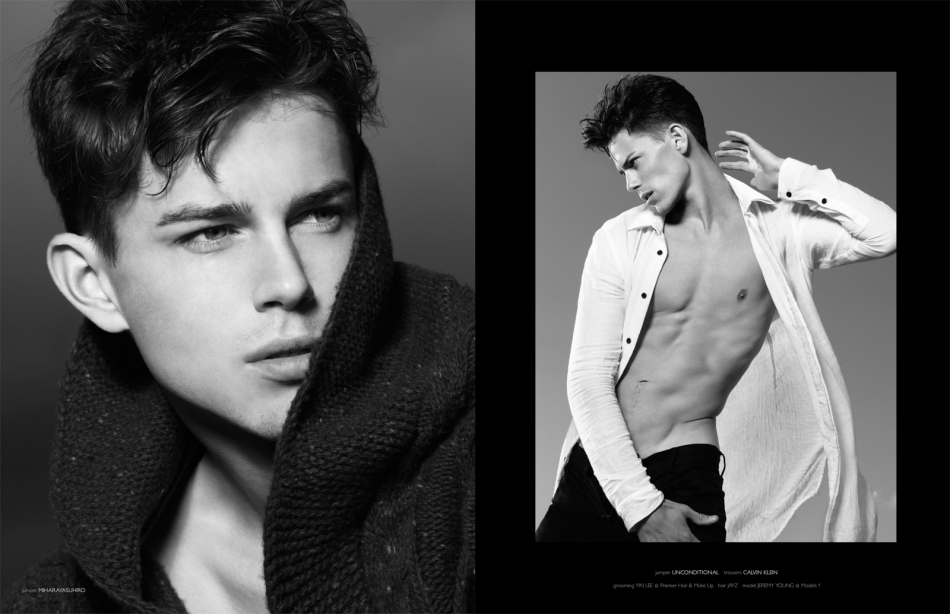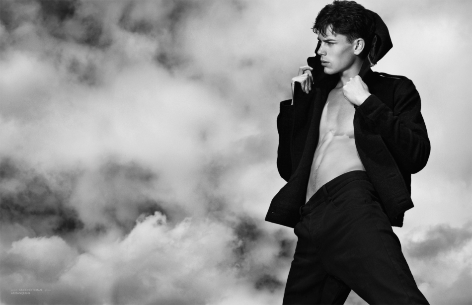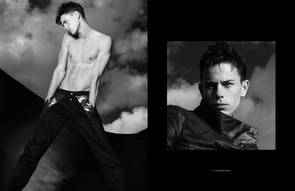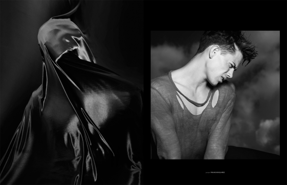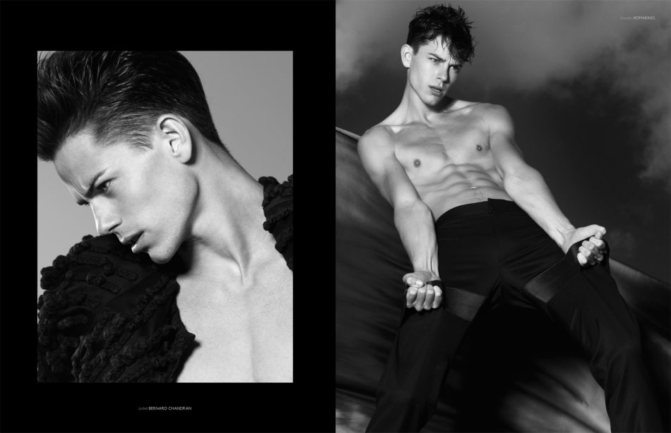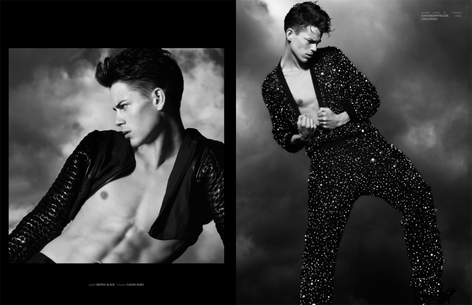 Jeremy Young is flying high in this editorial for The Ones 2 Watch, in collaboration with Greek duo shot by Dimitris Theocharis and Ioannis Dimistrousis. The charismatic British model shows off his hard work at the gym as well, as he bares his chest in these bedazzled pieces from designers like MiharaYasuhiro. Courtesy of – hommemodel.blogspot.com