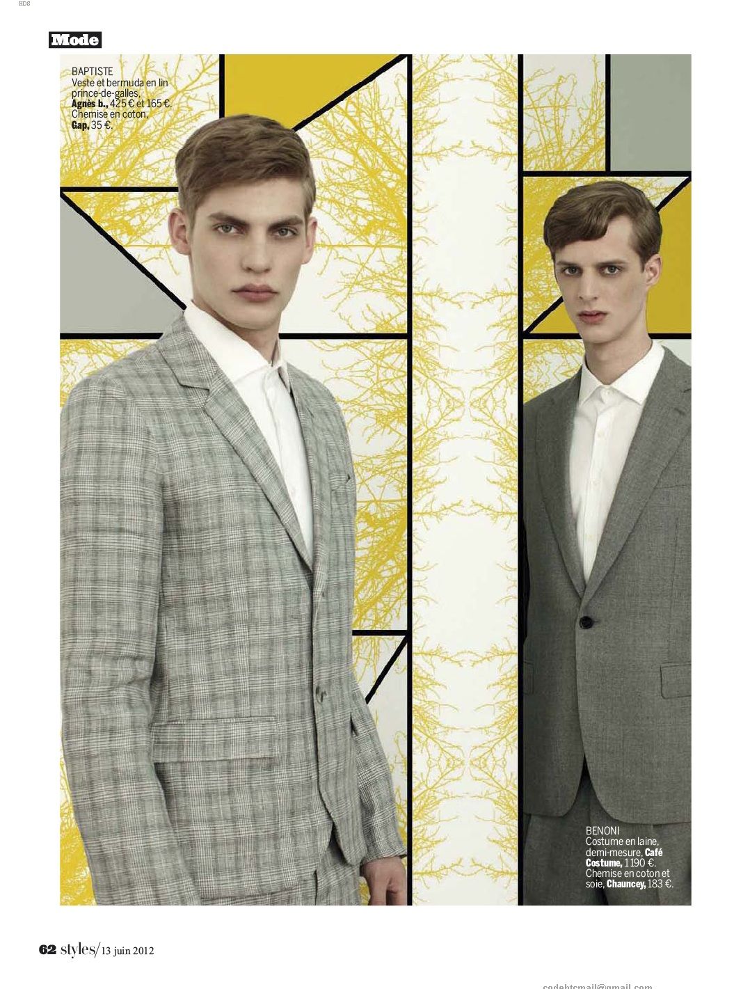 Baptiste Radufe and Benoni Loos are the kings of diamond in this shoot from Luc Praet from L’Express’s 3180th issue. The pattern-heavy shoot is accented by sleek Prince of Wales and plaid patterns, all set against architectural and geometric lines. Courtesy of – hommemodel.blogspot.com