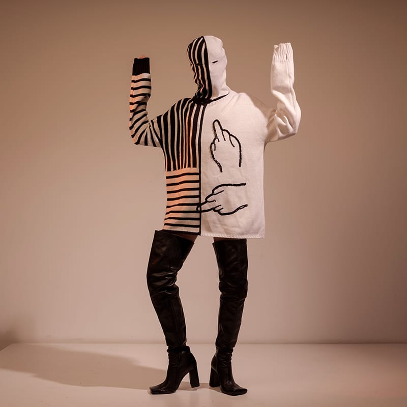 I like to combine styles both in music and clothes. I can’t clearly describe my style because it is constantly different. I love to mix things. I think you already understood this (laughing). but I made a bet on the visual image unconsciously. This is my sense of style, I dress up equally in everyday life and in performances. My artistic image it’s the quintessence of movements, glances, and energy. It all reflects my inner self and perception of the world.