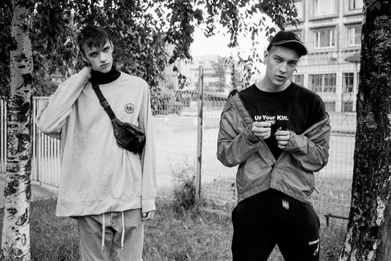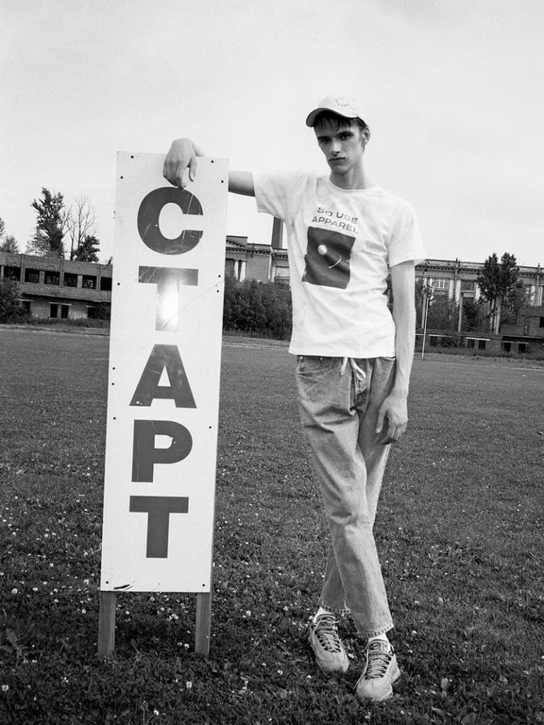 “Kirovets Stadium was shot on location in Leningrad Oblast, Russia. Inspired by the old work of Juergen Teller for Russian Vogue in 1999, photographer Anton Rudzat shot 90% on the classic contax g2 using black and white film, in exclusive for Fucking Young! Online. Full of fresh faces from Lumpen Men donned in popular street wear, Kirovets Stadium also introduces us to the young Saint Petersbourg street wear collective Blockada paying tribute to the 55th anniversary of the first flight to space lead by cosmonaut Yuri Gagarin.