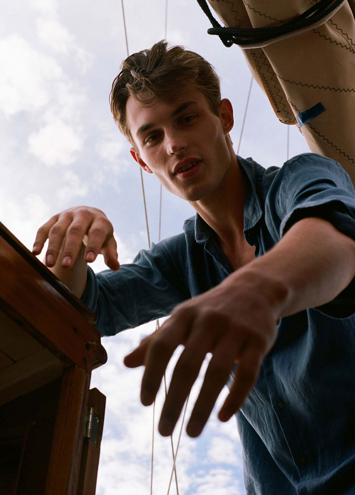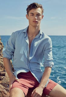 “Top models Kit Butler, Oscar Kindelan, and Swann Guerrault pose in linen shirts, light suits and blazers from Massimo Dutti‘s Spring Summer 2019 collection, for brand’s The Summer Memo holiday story.