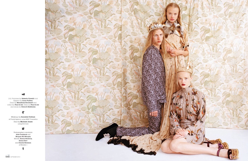 Royal Affair–Joining Emma Skov and Charlie Newman for a story in Paper magazine, model Konan Hanbury provides a fun young image of royalty. Styled by John William in fall garments from the likes of Italian label Prada, Konan is photographed by Holly Falconer. / Makeup by Annabel Callum (Frank Agency) using M.A.C. Cosmetics. Hair by Michael Jones using Davines. Photo assistance by Alex Craddock and Morgan Hill-Murphy. Courtesy of – thefashionisto.com
