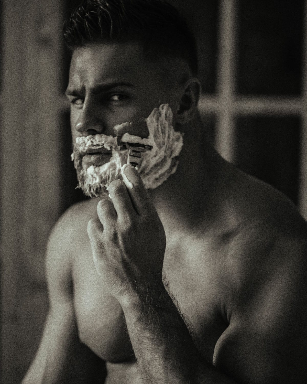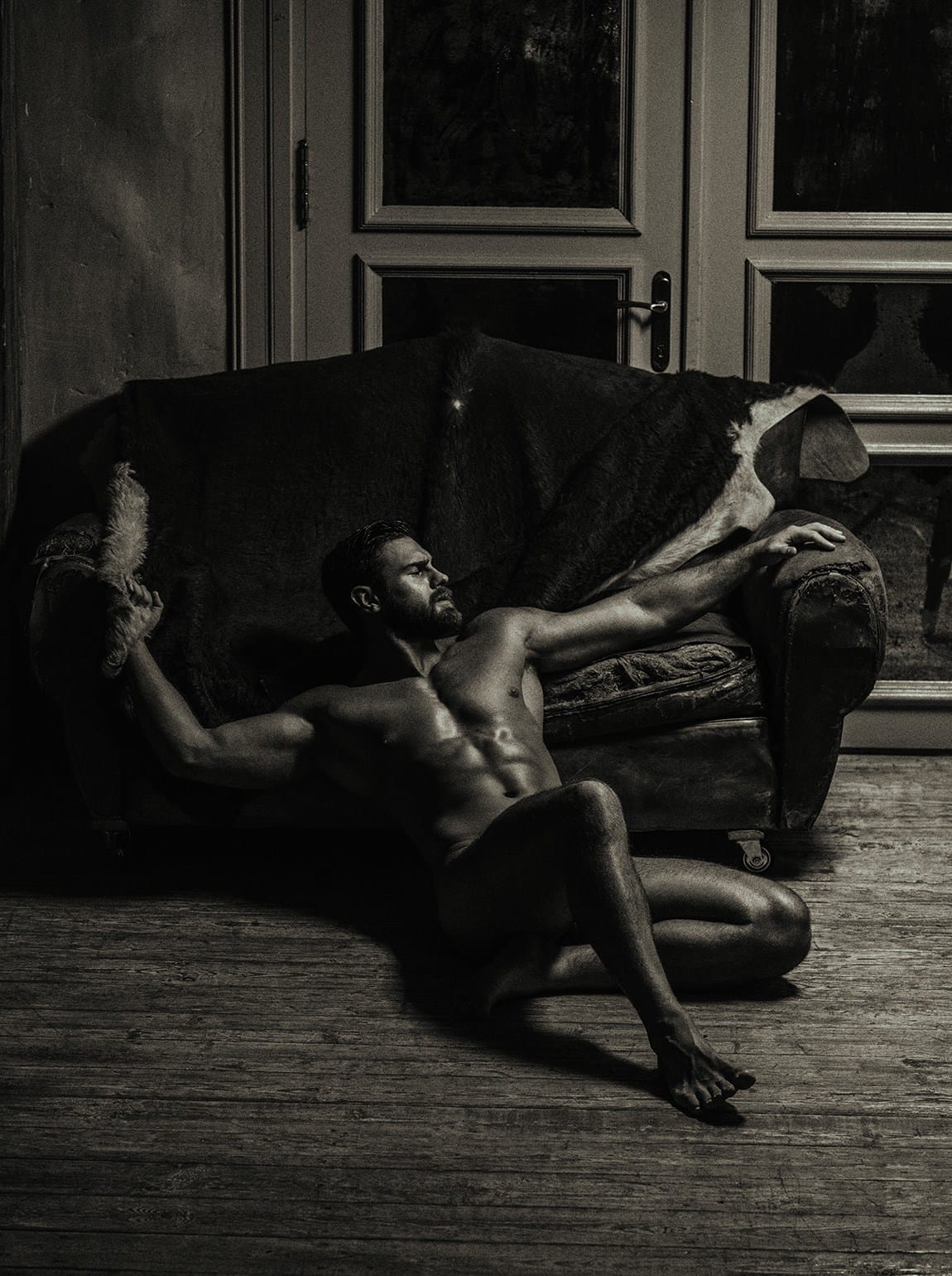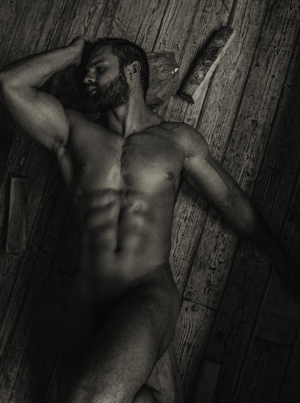 “Hunky Russian fitness model Konstantin Kamynin (previously known as Kirill Dowidoff) collaborated with photographer Serge Lee on a sexy new 2017 official calendar, in which Konstantin plays a lone wolf in a remote cabin.” – homotography.blogspot.com