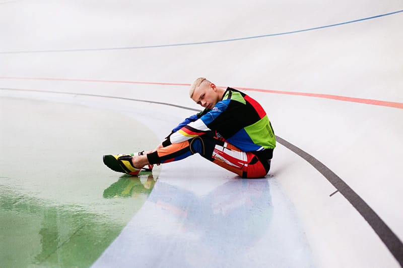 “Kiev-based Ksenia Schnaider is an independent studio founded in 2011 by a fashion designer Ksenia Schnaider and a graphic designer Anton Schnaider known for upcycling athletic deadstock with new graphic designers. For Spring Summer 2018, they have expanded into menswear while keeping their androgynous ethos.