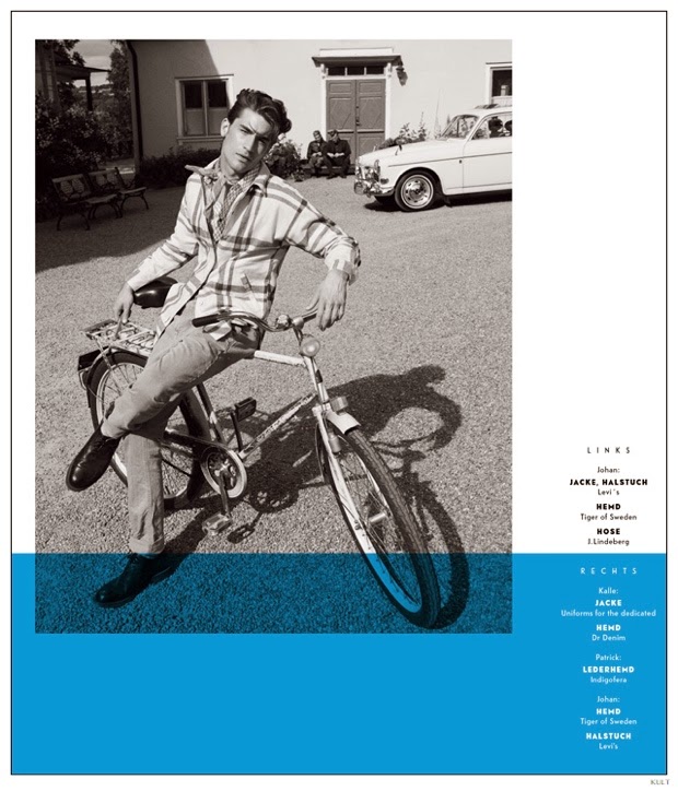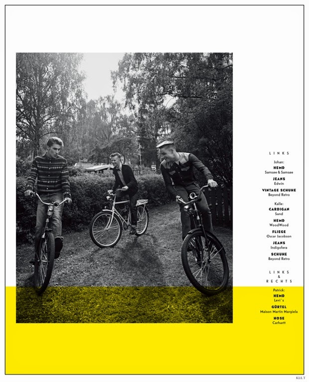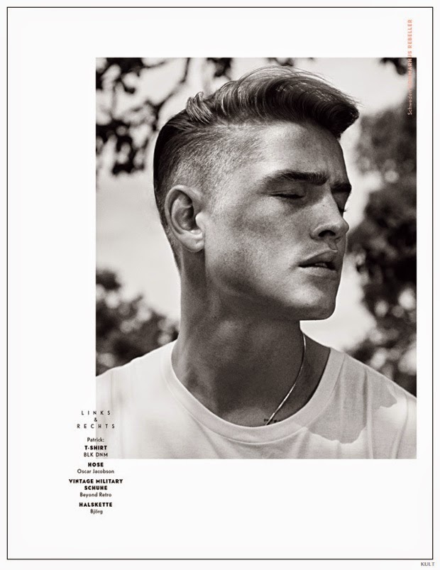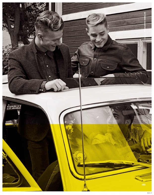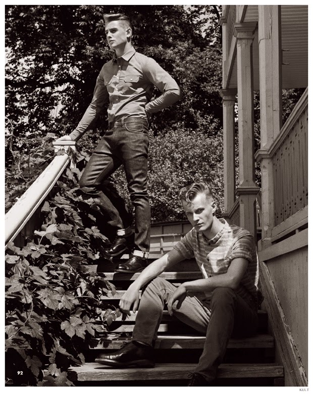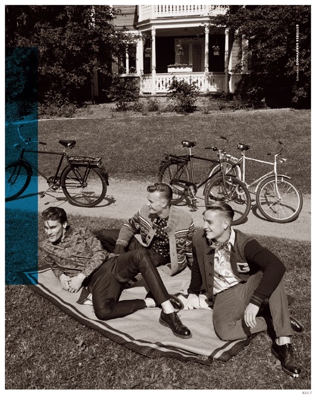Kult models Patrick O’Donnell, Johan Johansson and Kalle Lagerstrom take a step back in time for a new fashion editorial from Kult magazine. Groomed to a t by Peter Johansson, the boys wear chic pompadours as they pose for the lens of Viktor Flume. Outfitted by stylist Lars-Fredrik Svedberg, the models sport classic white t-shirts, denim jeans, smoking jackets and more. Courtesy of – thefashionisto.com