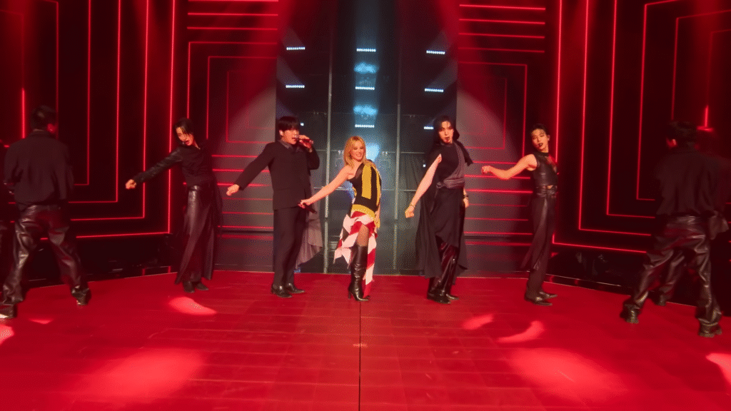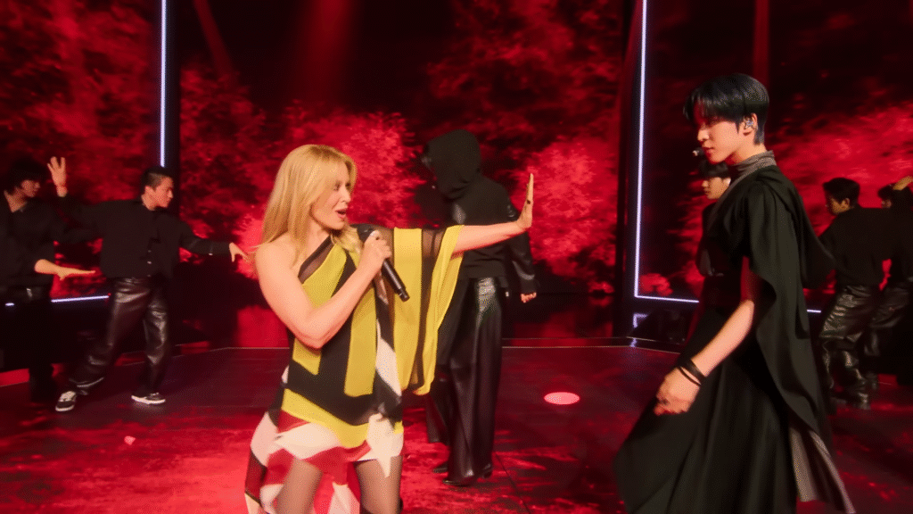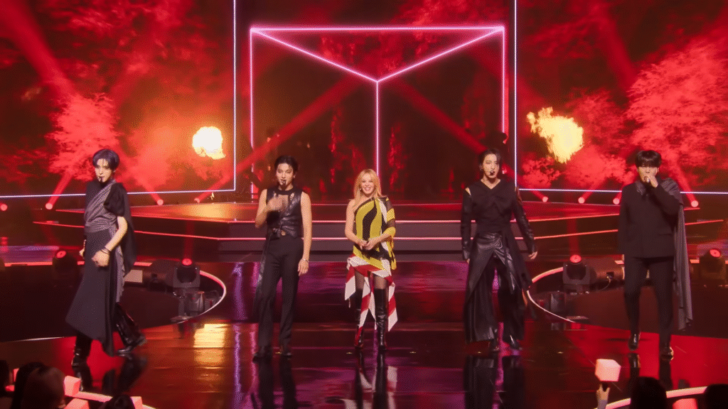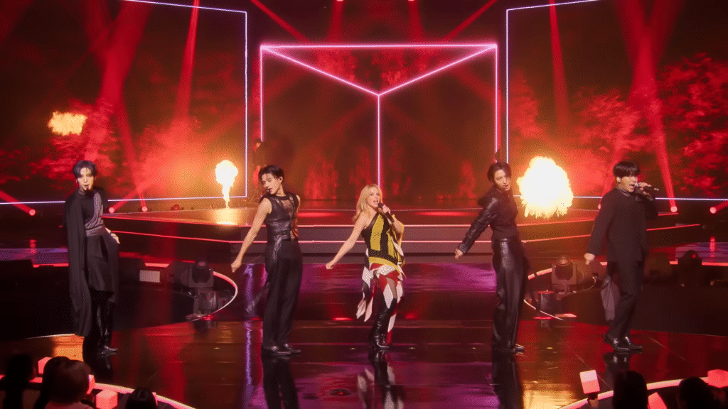 Kylie Minogue & ATEEZ Perform Stellar Sexy ‘Can’t Get You Out of My Head’ On Apple TV+’s ‘KPOPPED’ Series.