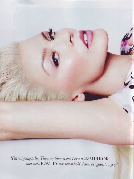 Electro pop queen Kylie Minogue is a platinum blonde on the January 2013 cover of Elle Uk and in the issue she describes what its like when she looks in the mirror revealing she’s not the hot pant wearing young-in any more .