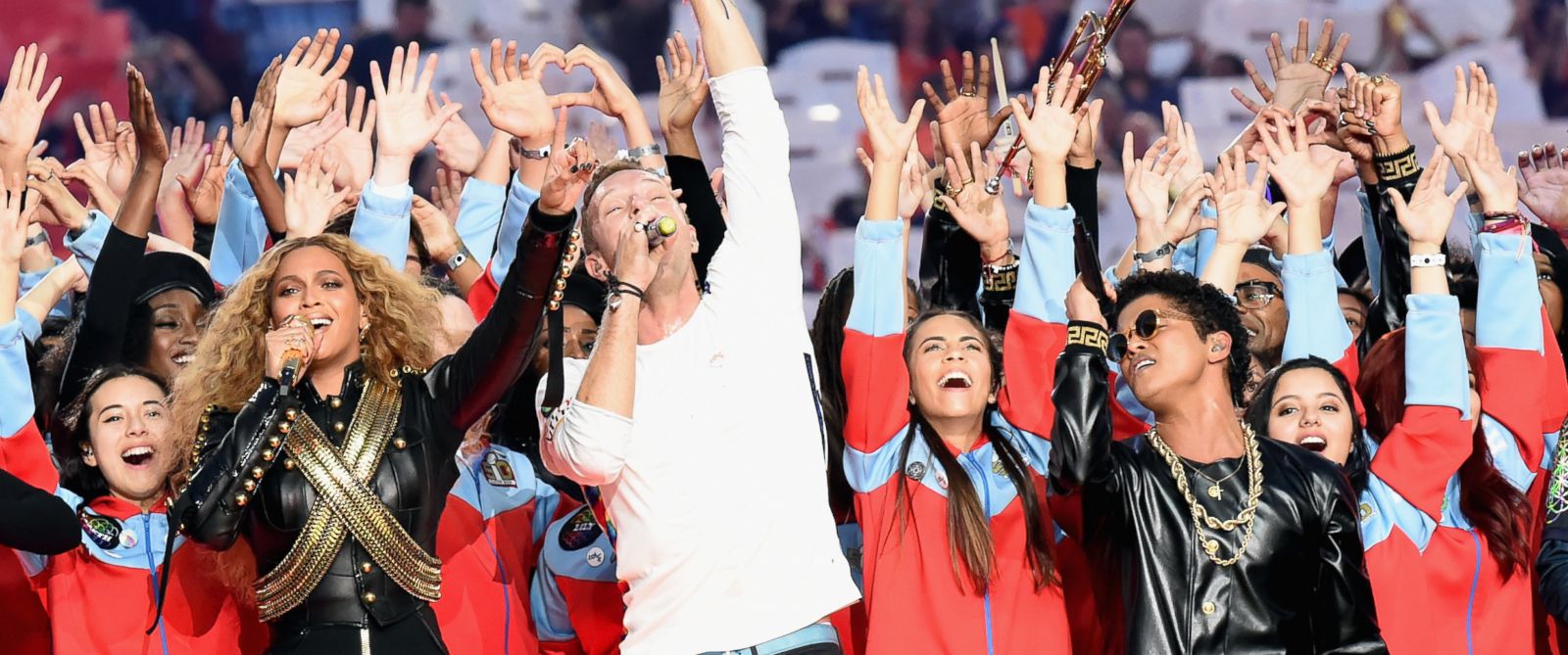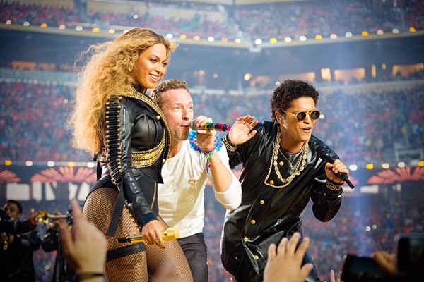 Unfortanutely kiddas, there was no loooooong awaited live duet performance between Beyonce and Lady Gaga singing their legendary pop classic songs, 2009 & 10’s Telephone/Videophone. However, there was plenty of razzle dazzle, from Gaga’s pitch perfect iconic history making moment of her unique rendition of The Star Spangled Banner. A flower-power, amorously driven medley saw Coldplay’s opening the Halftime show in a protest-like manner for World Peace.
