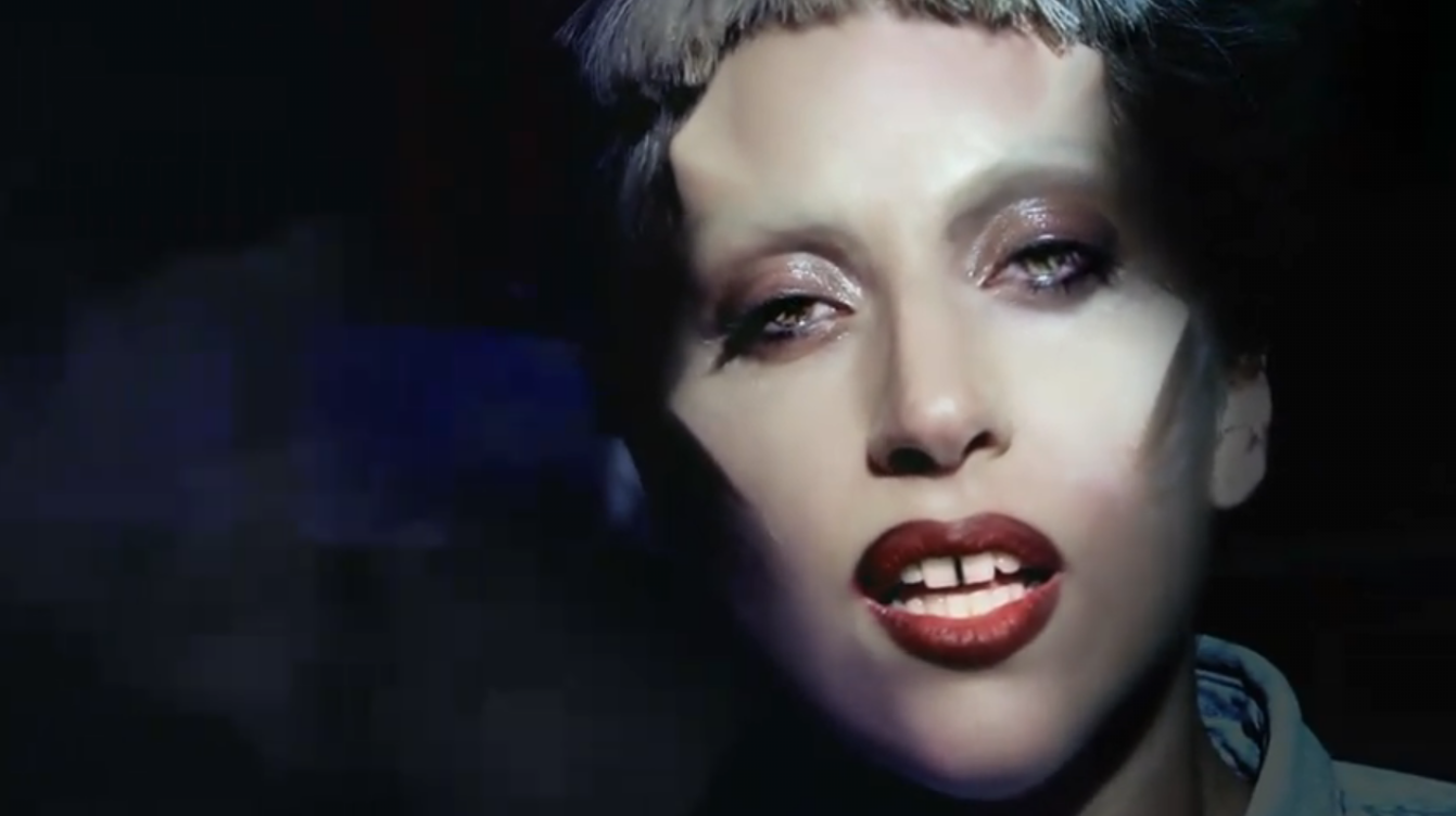 LADY GAGA wears head accessory ALEXIS BITTAR, diamond neckpiece ERICKSON BEAMON