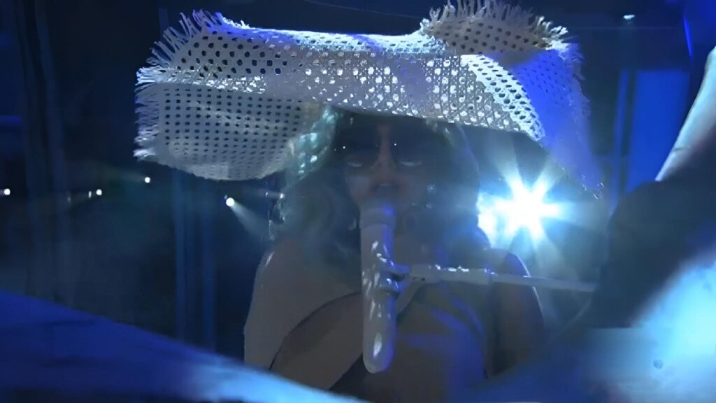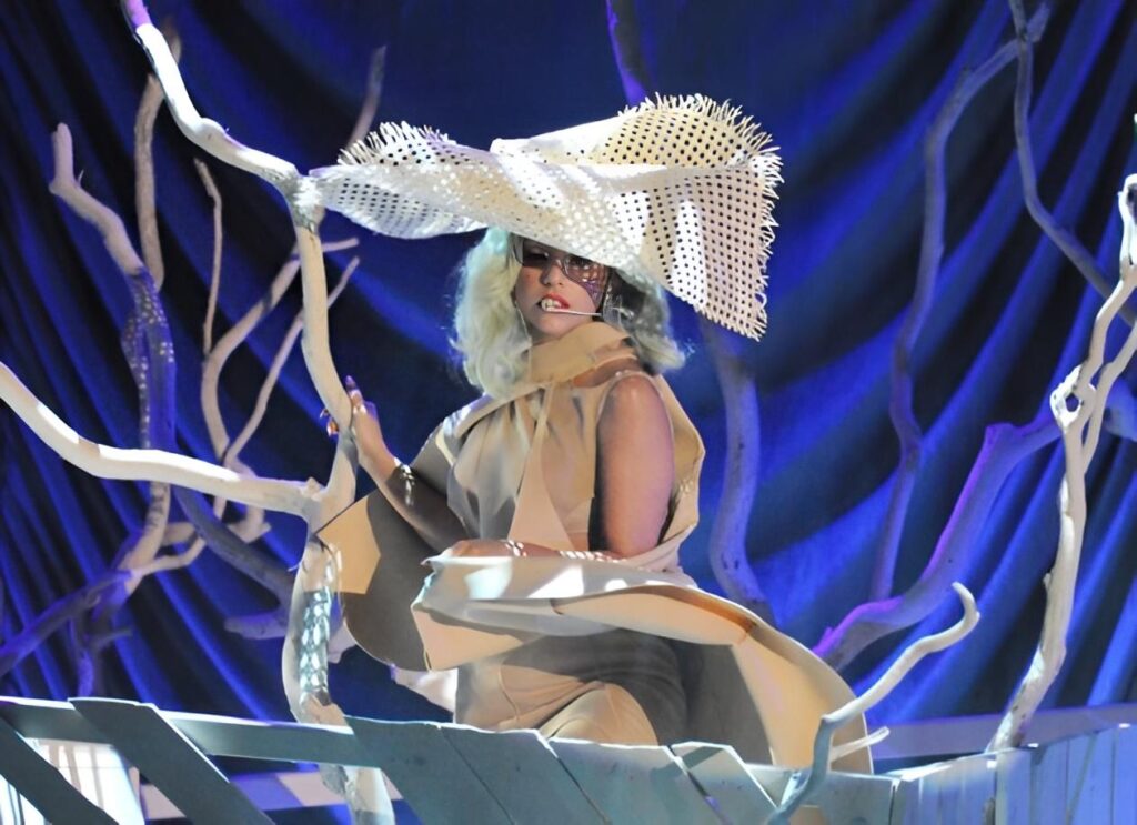 “the @philiptreacy hat designed for this performance at the bill Clinton foundation was stuck in customs, so I looked around my apt and saw a wicker chair, Well it wasn’t a wicker chair for much longer 😂“