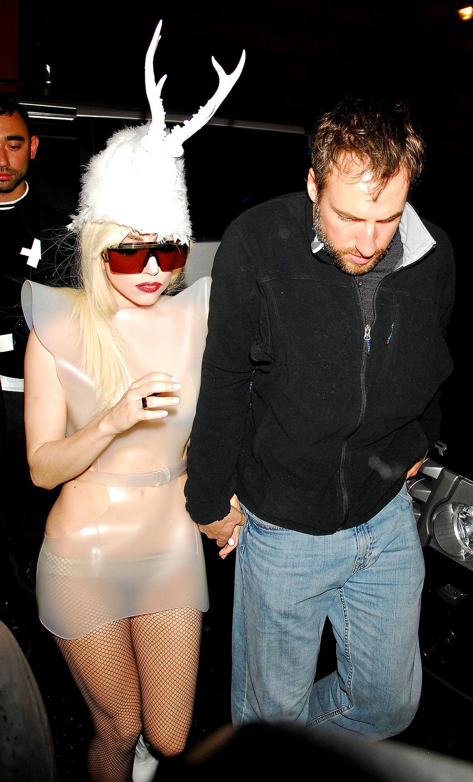 Leave it to Lady GaGa to get us in the Holiday spirit. Say goodbye to blood, monsters, and demons…it’s all about the reindeer now!! Last night in London, Gags sported a see-though latex dress, shades and antlers after a busy day of sound checks and rehearsal. Total ready-to-wear(for me at least).