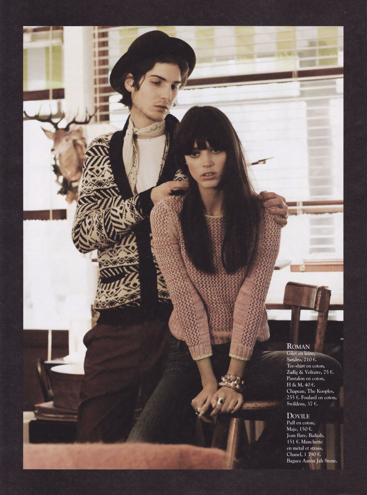 Romanticism is front and center for this shoot from Stephane Gallois and Virginie Benarroch for L’Express Styles’ February 2012 issue. Romain Duvigneau appears in the shoot alongside Dovile and dons The Kooples and Paul & Joe. Courtesy of – hommemodel.blogspot.com