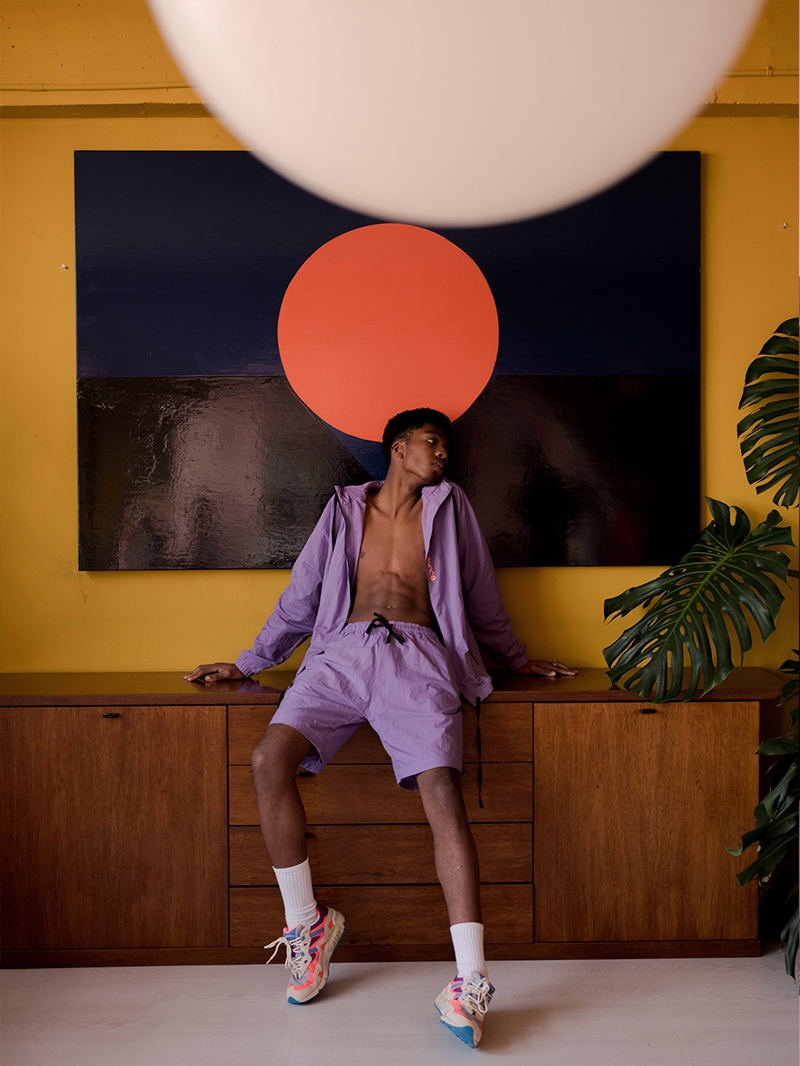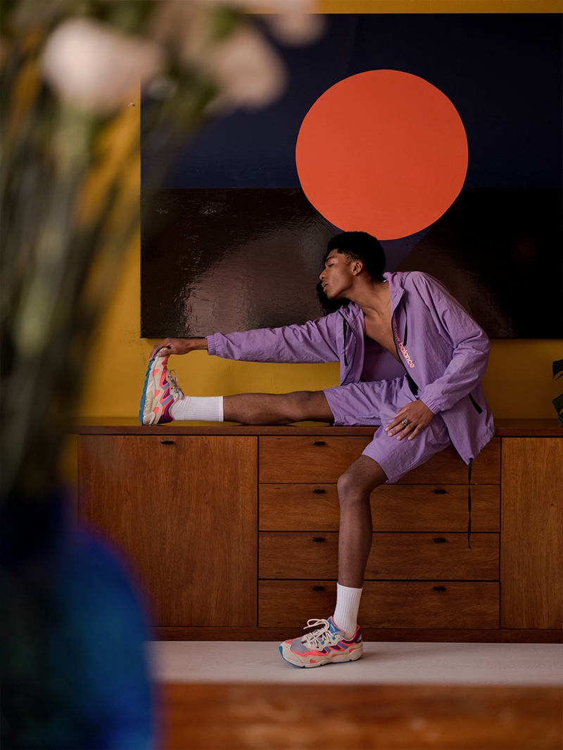 To complement Victor Von Schwarz’s look for this story, the designer picked New Balance and its recent relaunched sneakers – New Balance 850. 24 years after that the first pair of this model saw the light, this emblematic shoe perfectly illustrates the last decade of the past millennium. The model that featured for the first time the acronym ‘NB’ sewn on the heel, gets a makeover saying goodbye to the traditional logo that had characterized the brand until then and welcomes the New Balance N. The shoe recovers the aesthetics of the ‘chunky sneakers’, the thick-soled shoes dyed with vibrant shades popularized in the decade of the Backstreet Boys and the Spice Girls. Through the relaunch of this representative model, New Balance wants to pay tribute to a momentous era in its long and triumphant journey.