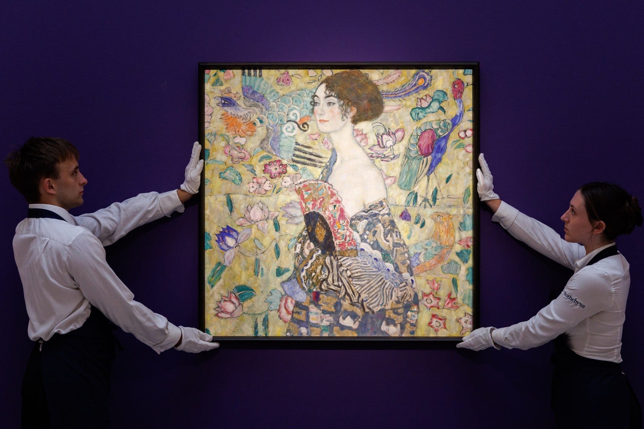 Sotheby’s said the sale of Lady With A Fan (Dame Mit Facher) in New Bond Street is a new record for Klimt and has become the most valuable work of art sold at auction in Europe.