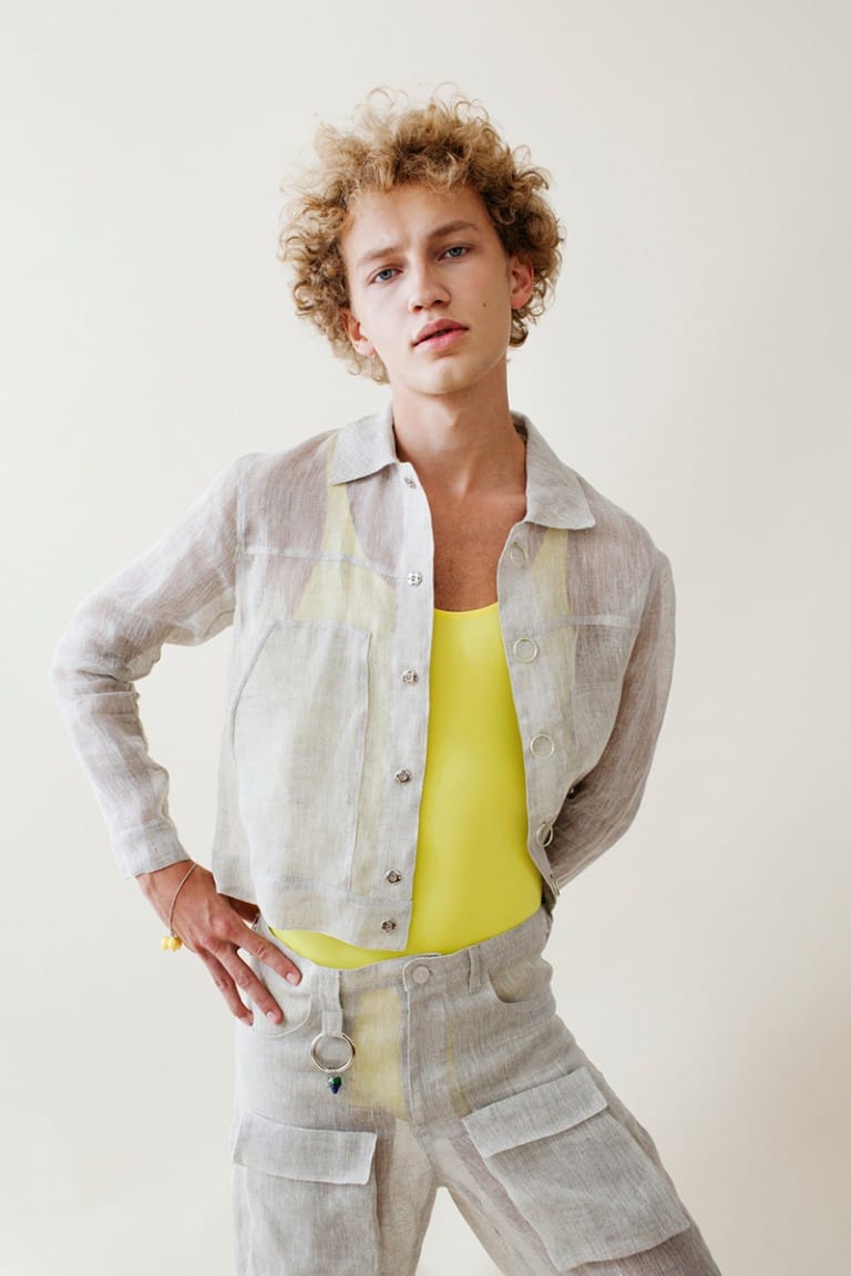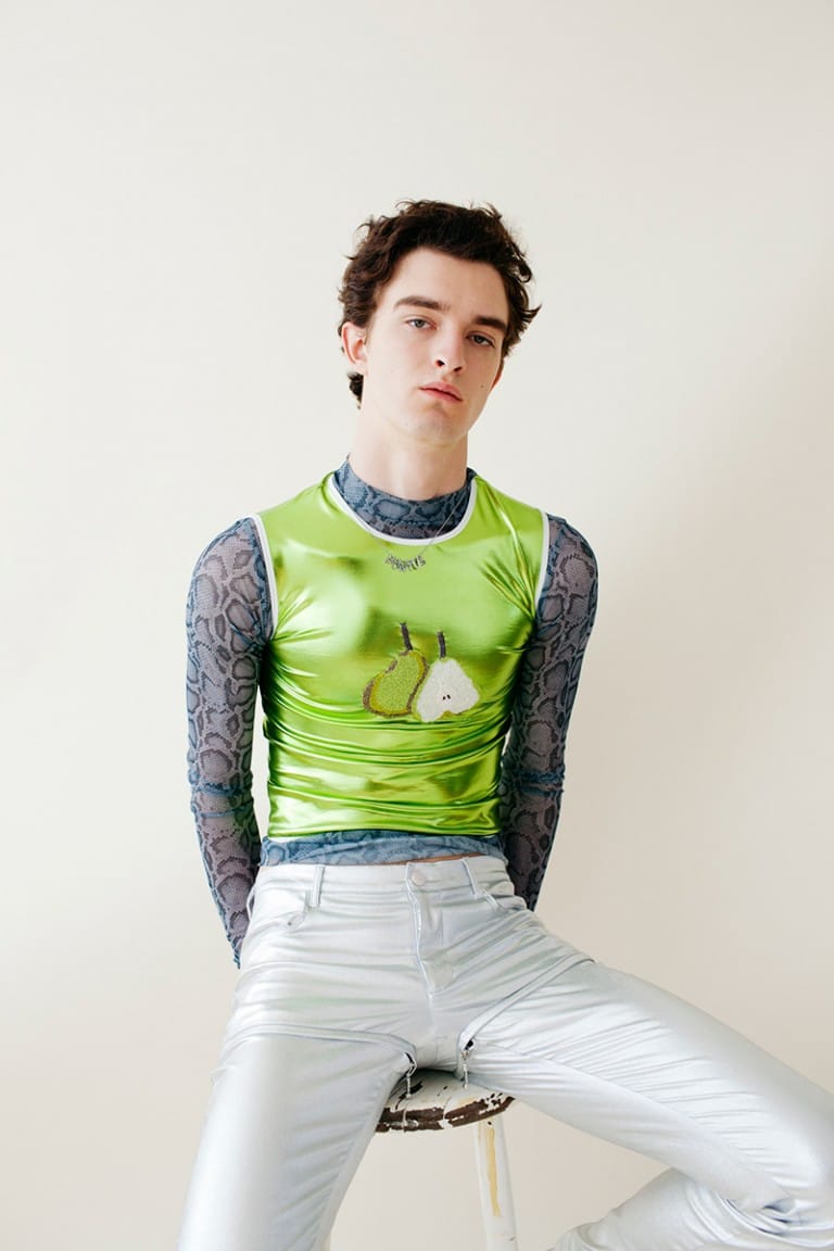 Dedicated to sex tourism, garments are built on the crossover between workwear and beachwear. Detachable cargo pants, hand-embellished souvenir T-shirts and front-laced shirts turn fashion into merchandise. Qualities range from the synthetic to the virgin: leopard spandex and metallic twill are combined with washed linen and raw denim.