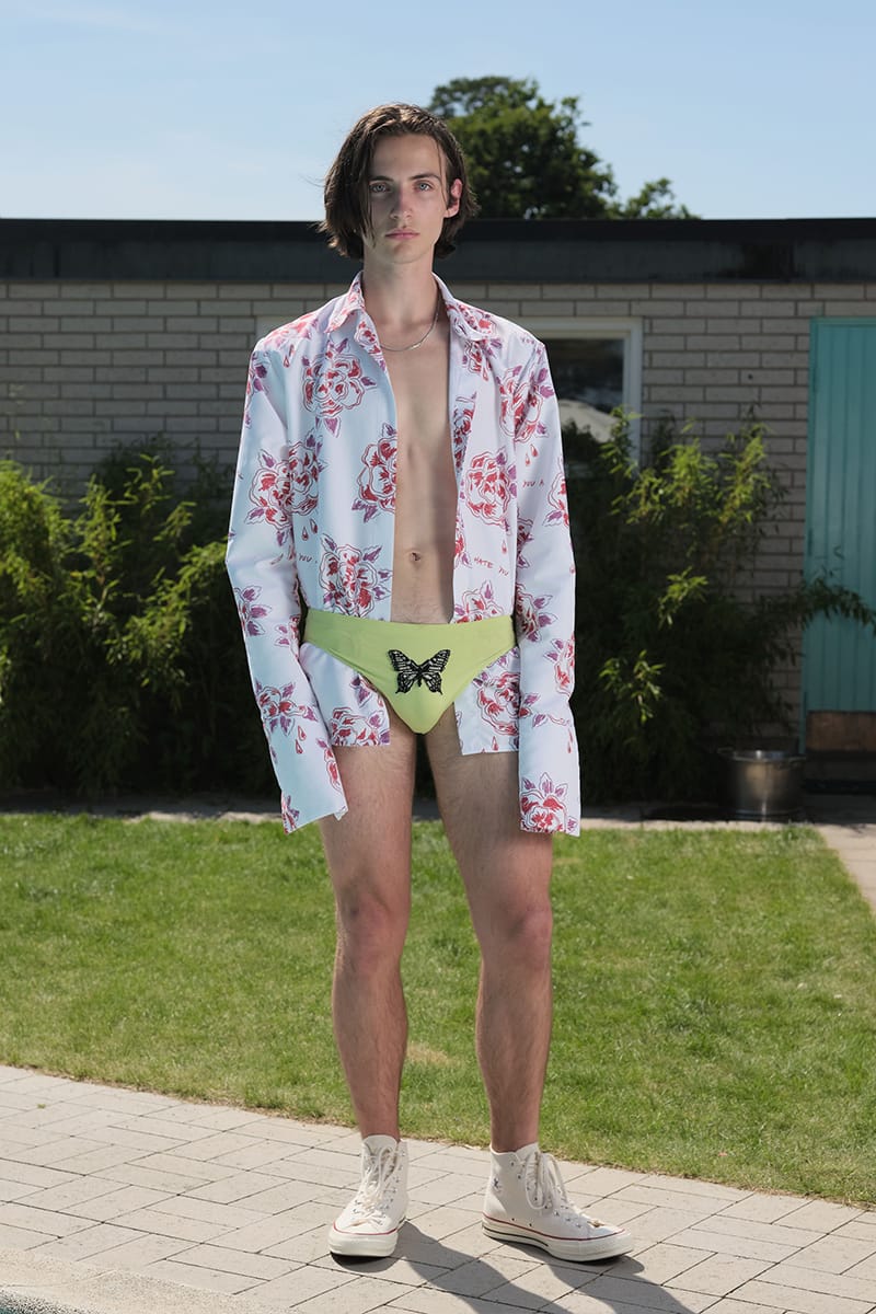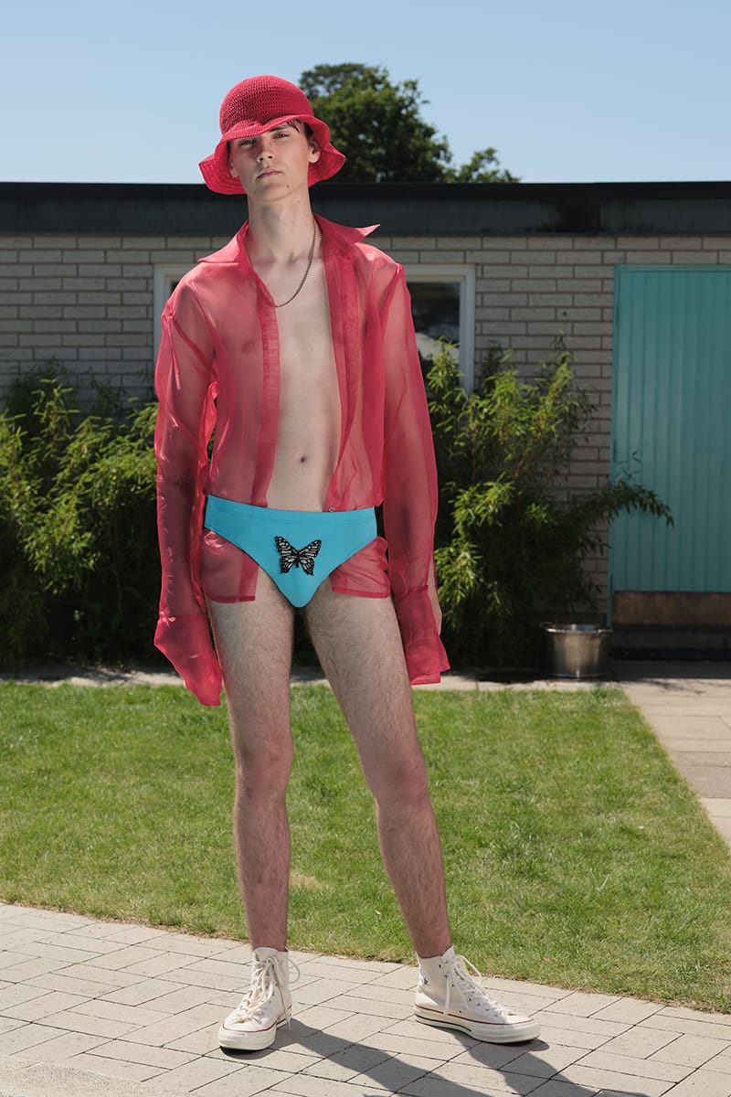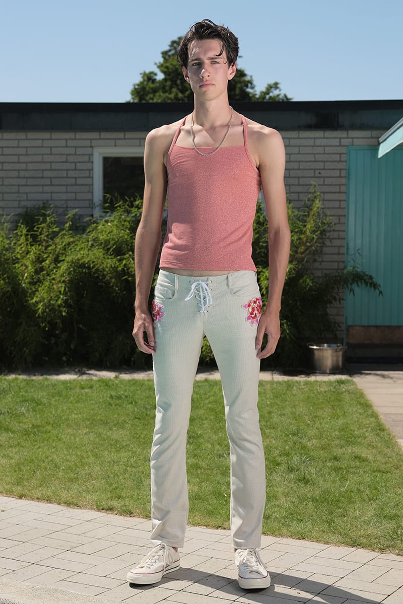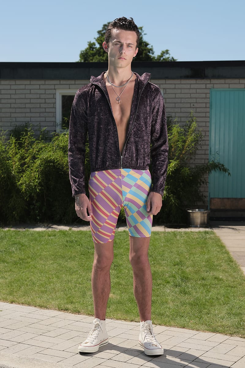 The collection features an eclectic mix of colours and materials dressing the complete cast of a never-to-be-produced movie. Following the couple’s stops travelling Utopia, settings range from cheap hotel pools to fast-food restaurants and Karaoke bars.
