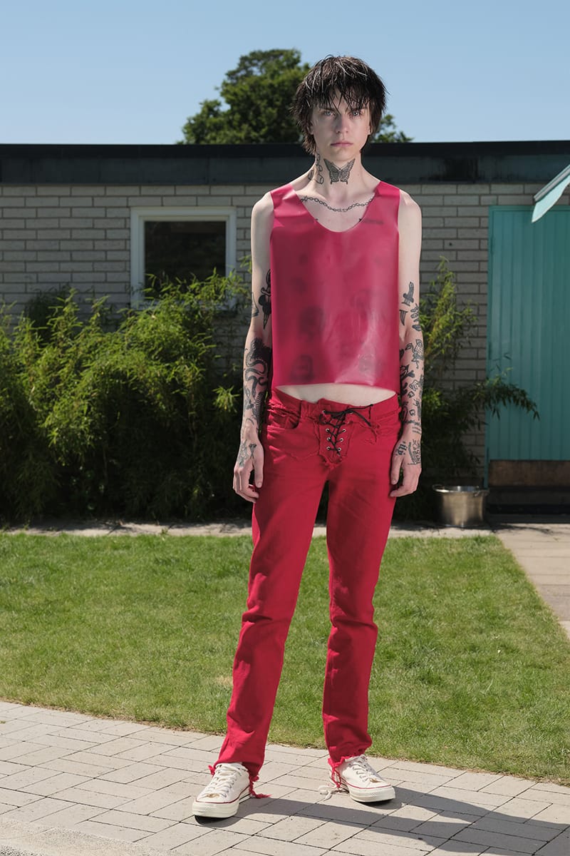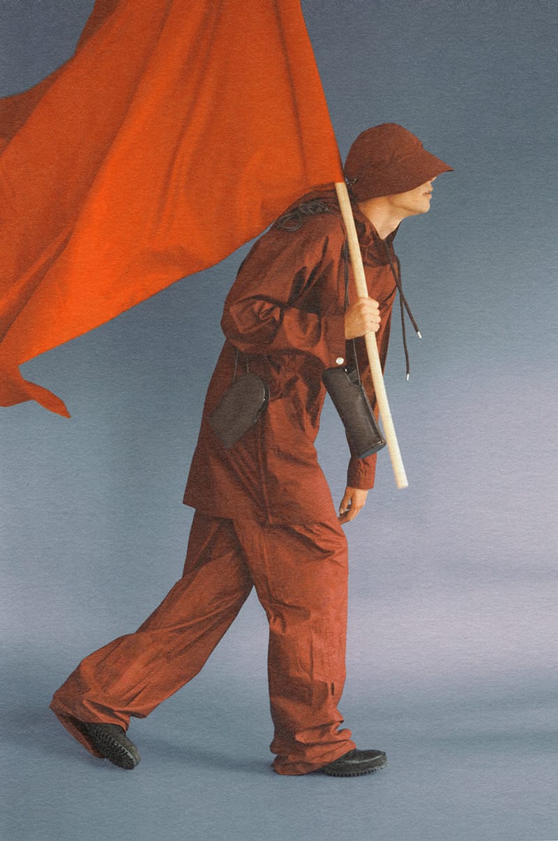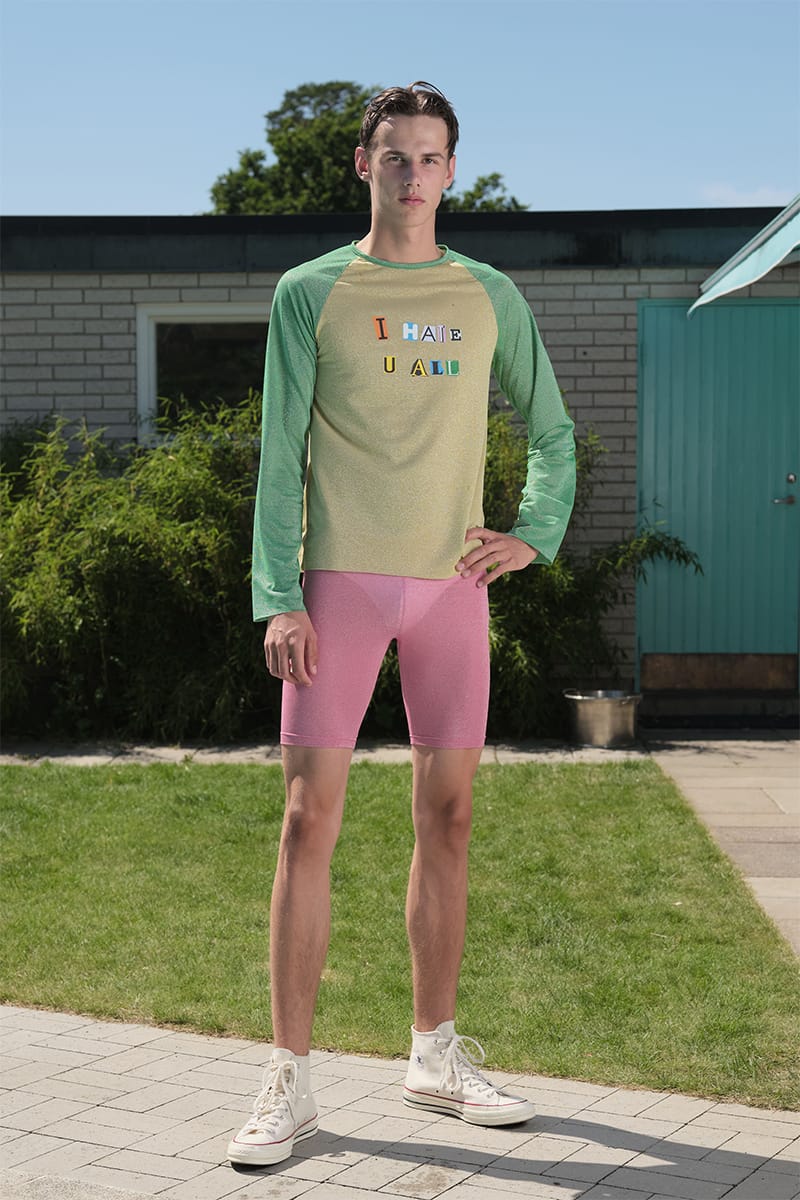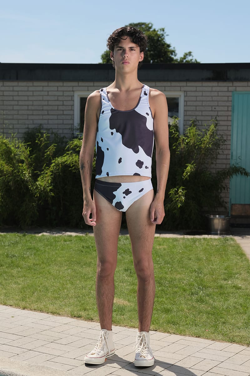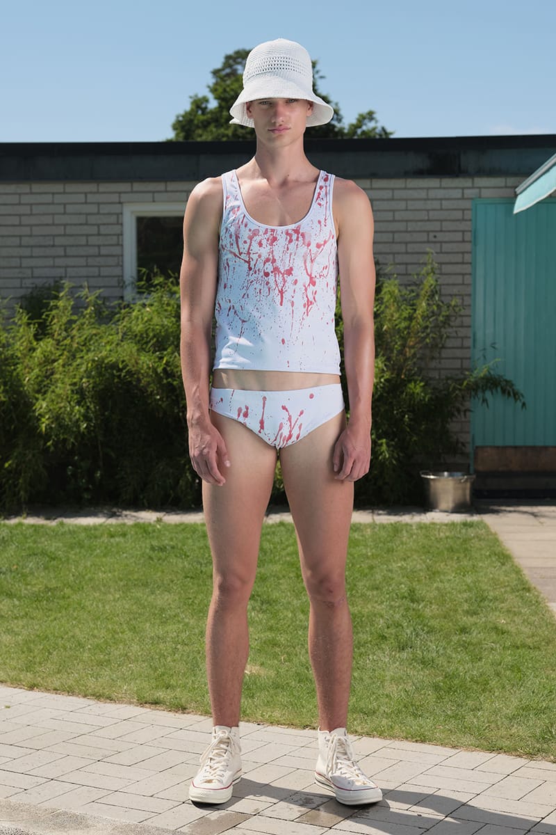 The collection features an eclectic mix of colours and materials dressing the complete cast of a never-to-be-produced movie. Following the couple’s stops travelling Utopia, settings range from cheap hotel pools to fast-food restaurants and Karaoke bars.